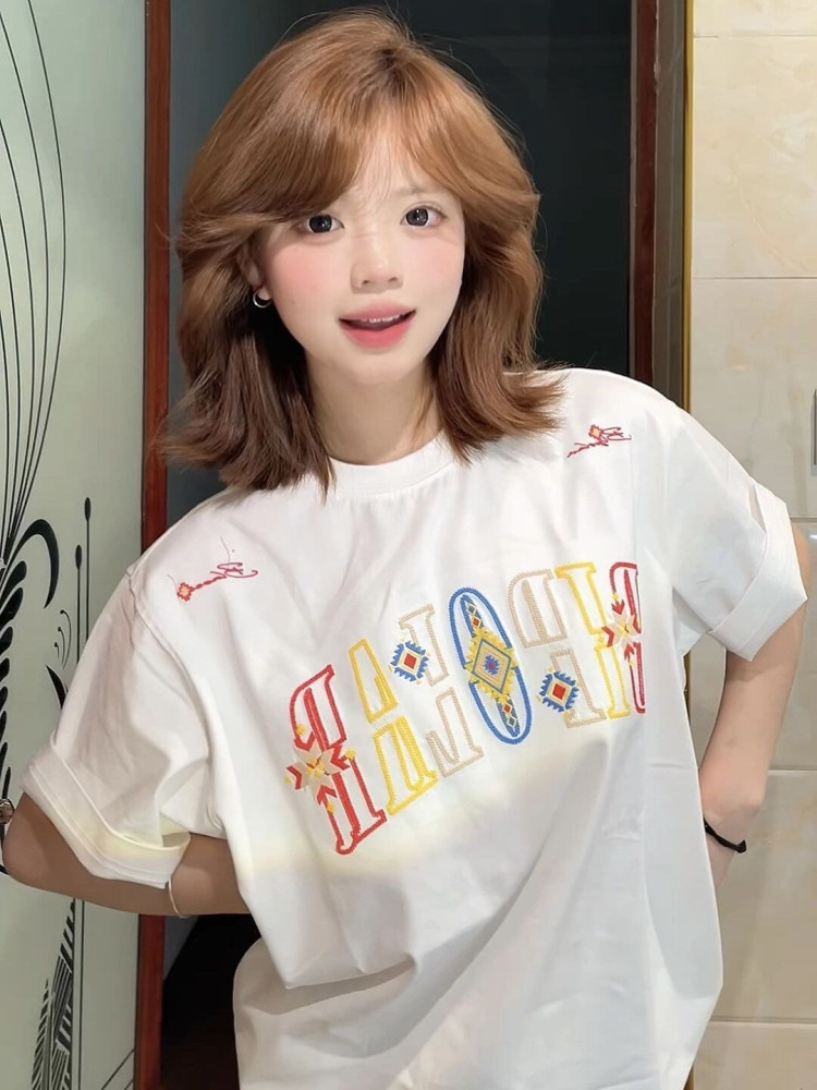 Embroidered Ethnic Letter Short Sleeve Women Summer Heavyweight Pure Cotton Casual Top High-quality product featuring summer fits, vacation outfits, work outfits women and more. Modern design that fits the latest trends. Premium materials ensure durability and comfort. Order now for special offers! Product designed with attention to every detail. Suitable for all occasions and personal styles.