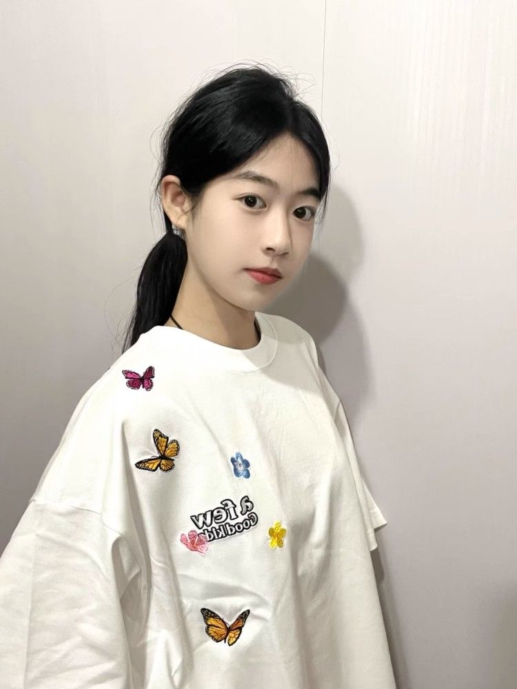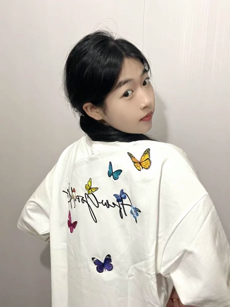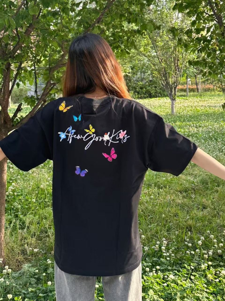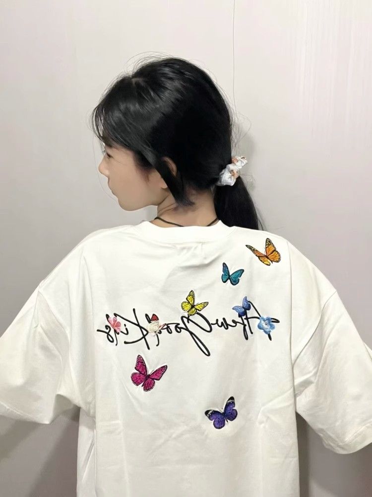 Elevate your summer wardrobe with our Embroidered Flying Butterfly Short Sleeve T-Shirt for Women. This trendy Y2K-style cotton top offers a comfortable, relaxed fit that effortlessly complements any outfit, making it the perfect choice for a unique couple’s look. Adorned with intricate butterfly embroidery, it adds a touch of whimsy to your casual attire. Embrace the season’s spirit and stand out in style add this must-have piece to your cart today!