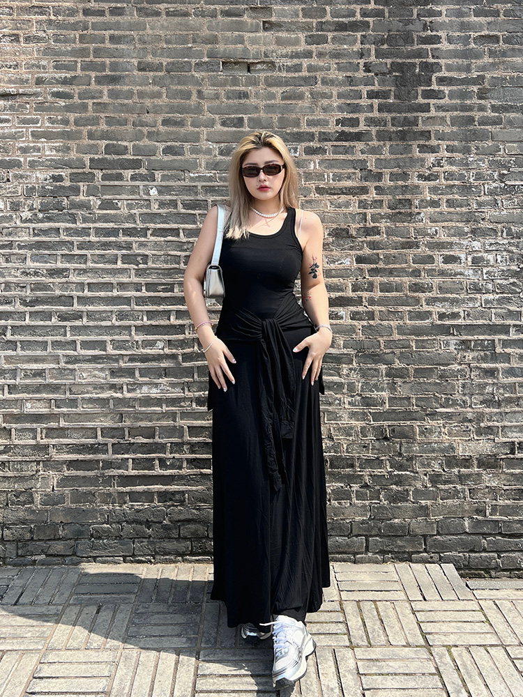 Elevate your wardrobe with our Faux Two-Piece Black Vest Dress, a stunning piece that embodies American street style. This mid-length sleeveless dress features a flattering slimming fit and a gracefully flowing long skirt, perfect for any occasion. Effortlessly chic, it’s designed to enhance your silhouette while providing ultimate comfort. Don’t miss out on this versatile addition to your collection add it to your cart today and step out in style!