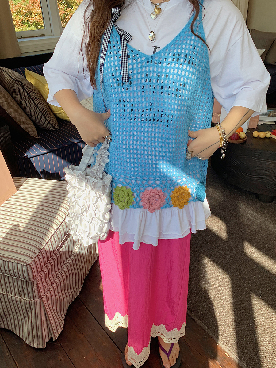 Elevate your summer wardrobe with our Floral Hollow Vest Women’s Cover-up, a stunning handmade sleeveless camisole top that embodies trendy Korean style. Designed for a relaxed fit, this chic outerwear piece features intricate floral detailing and a breathable fabric, perfect for those warm sunny days. Whether you’re heading to the beach or enjoying a casual outing, this versatile vest adds a touch of elegance and comfort to your look. Don’t miss out on this must-have addition add to your cart today!
