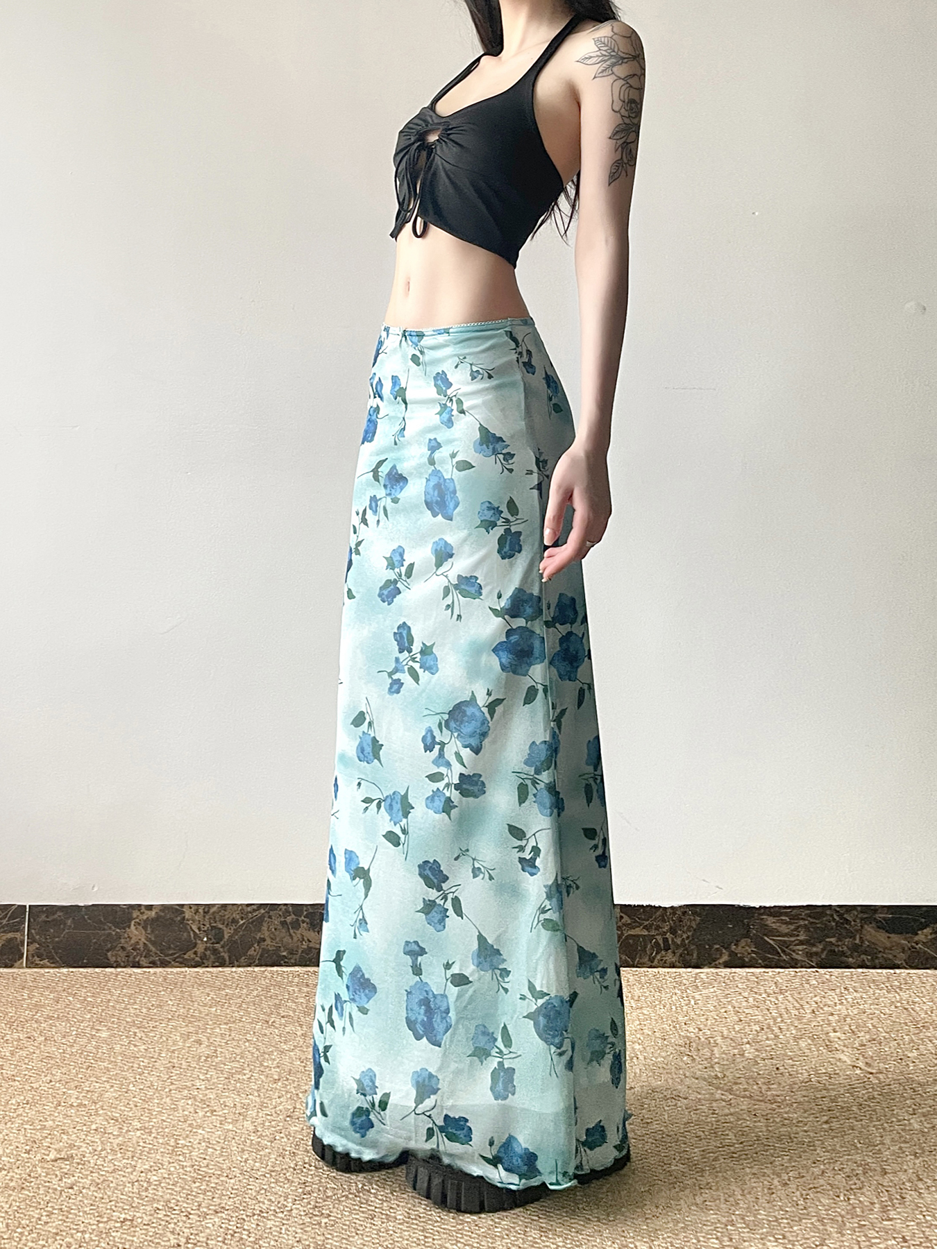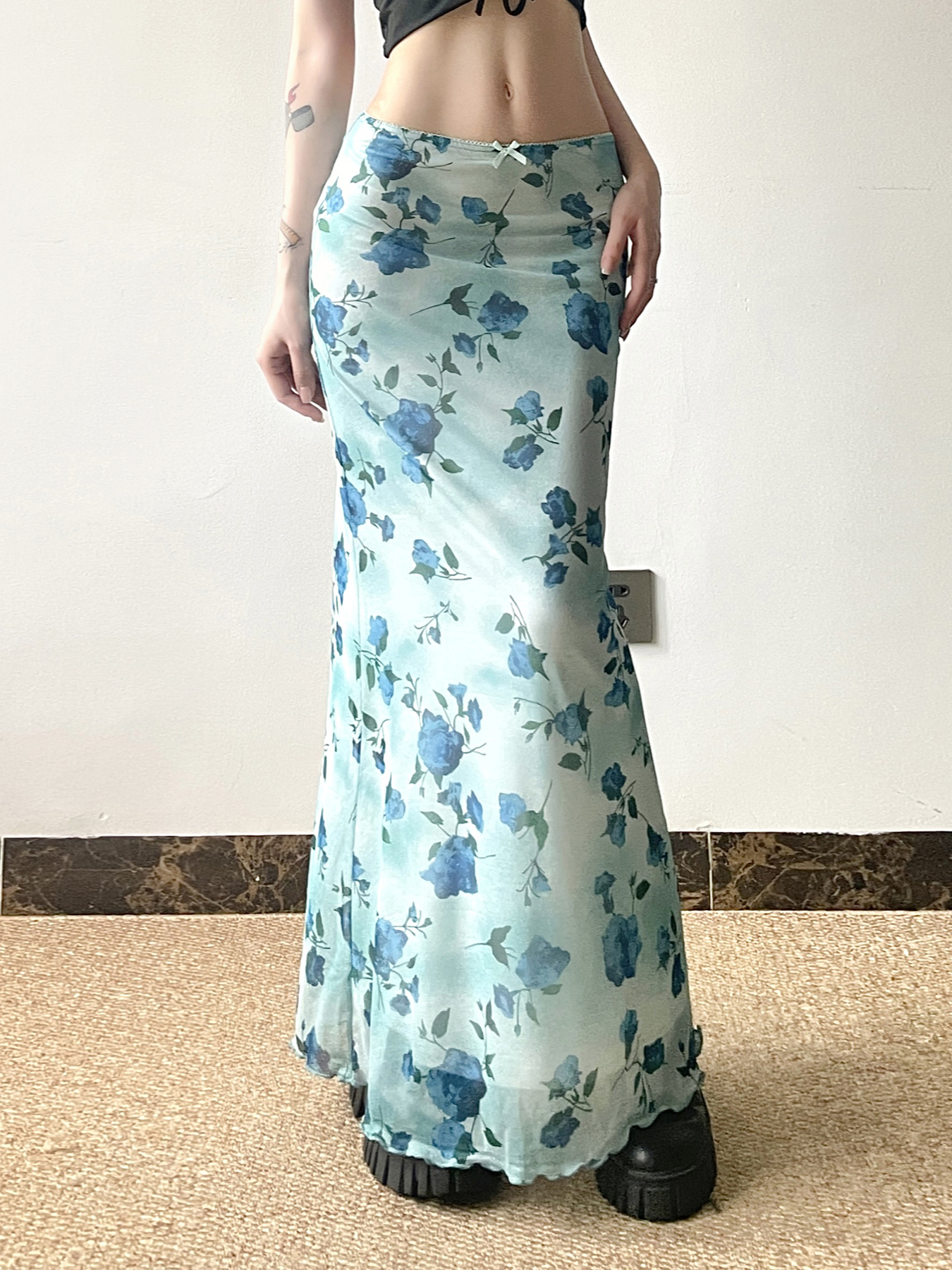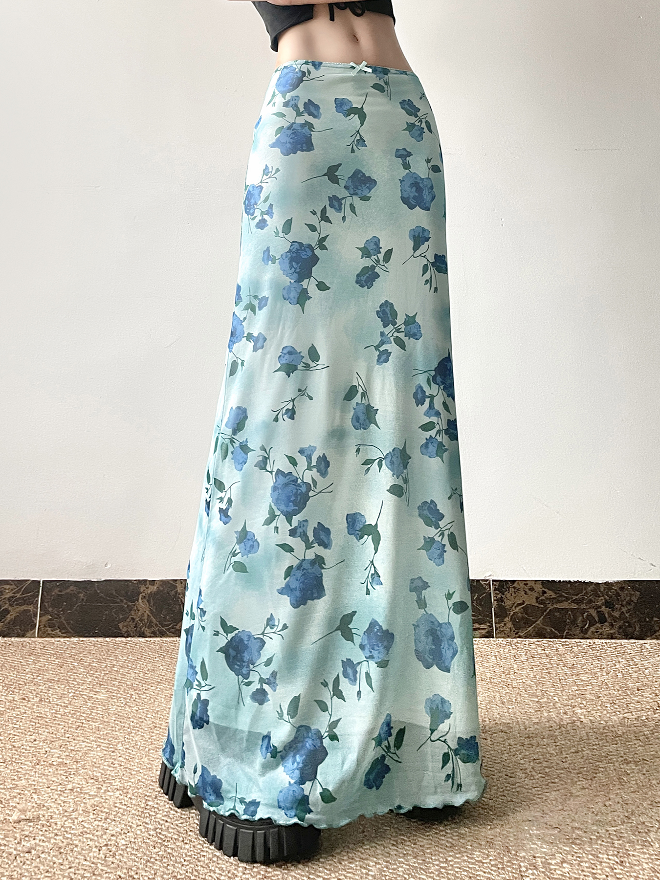 Floral Mesh Skirt Women Low Waislim Fit Long Pants Summer I – Skirt Outfits