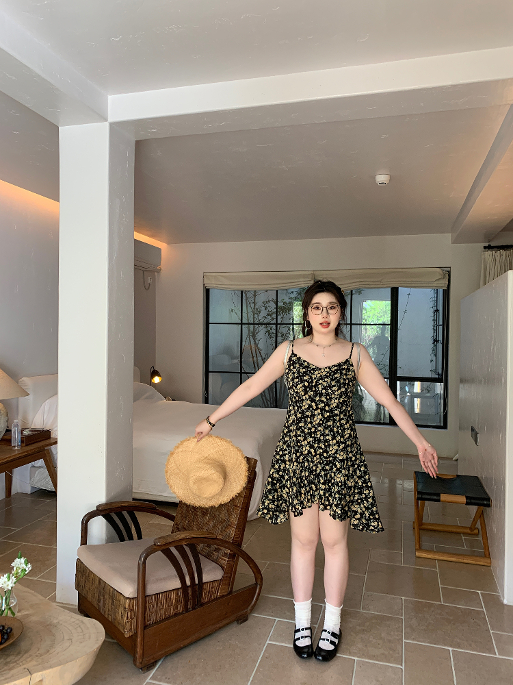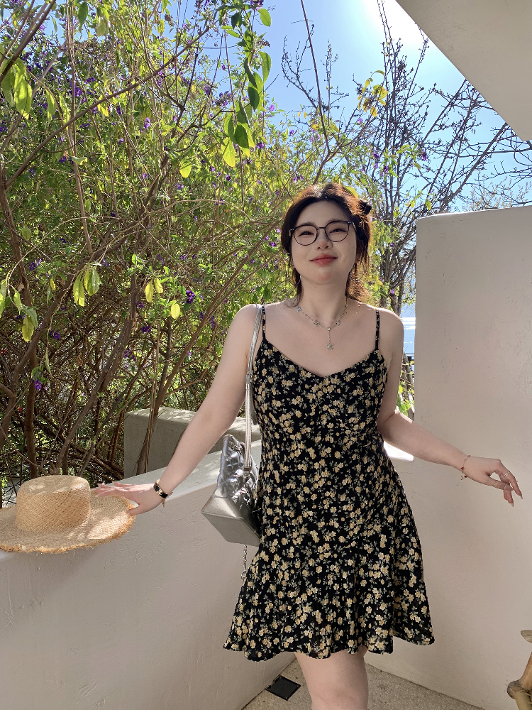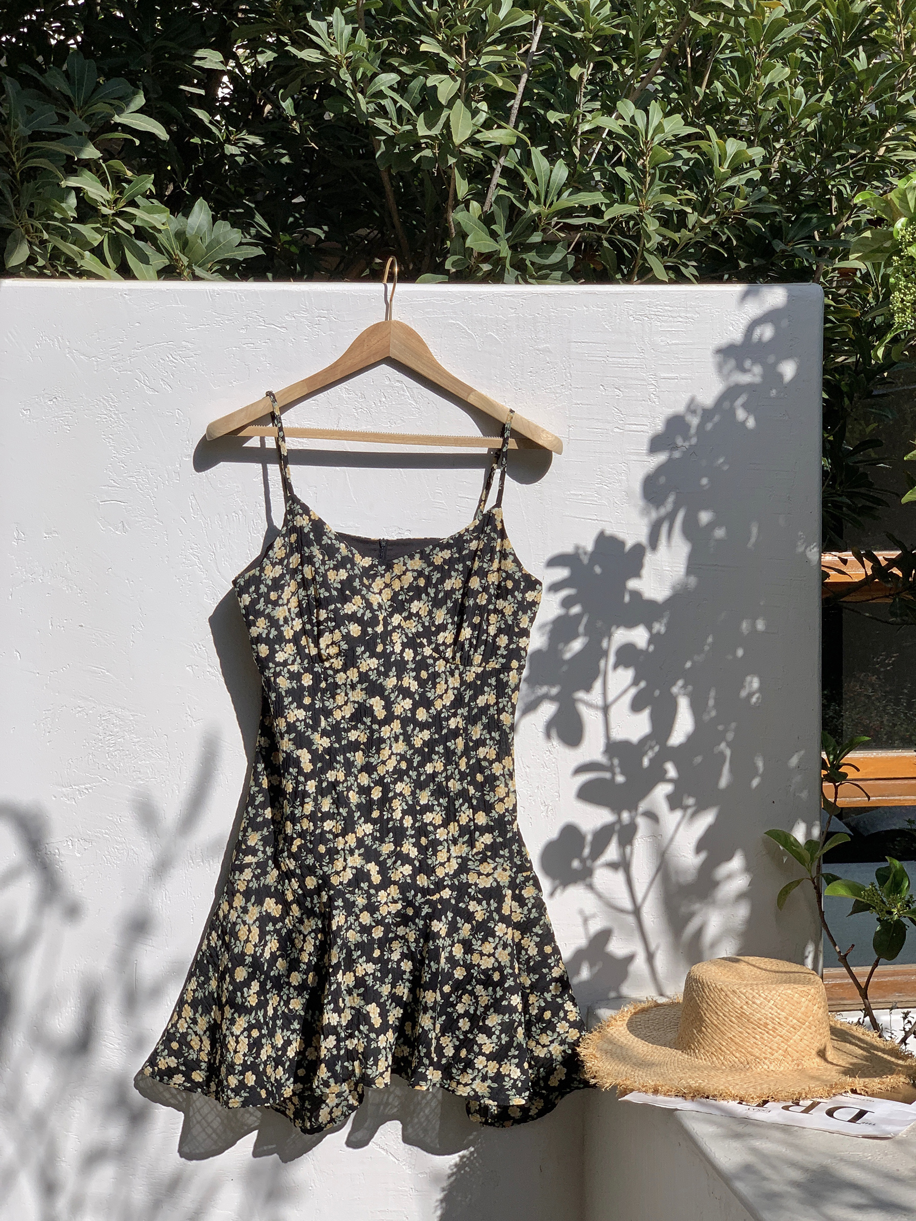 Floral Spaghetti Strap Dress V- Neck, Midsummer, Textured S – Spring Outfit
