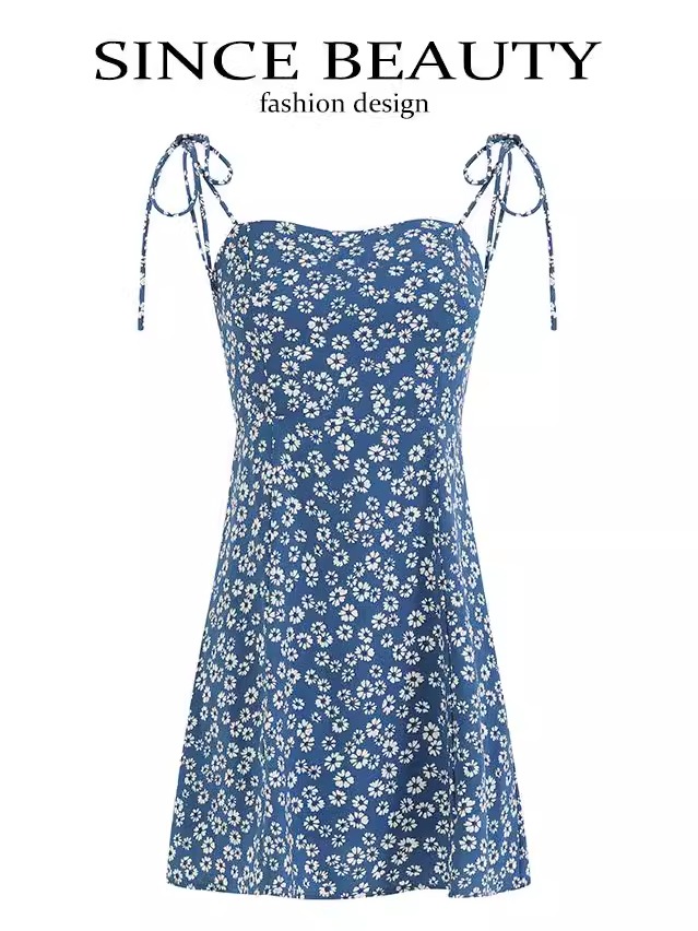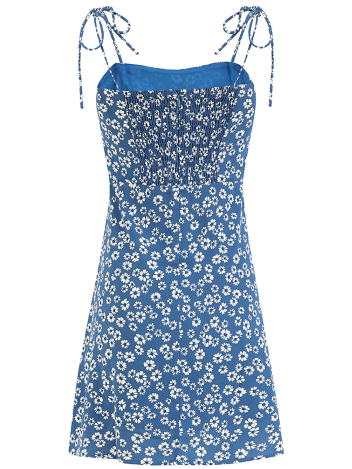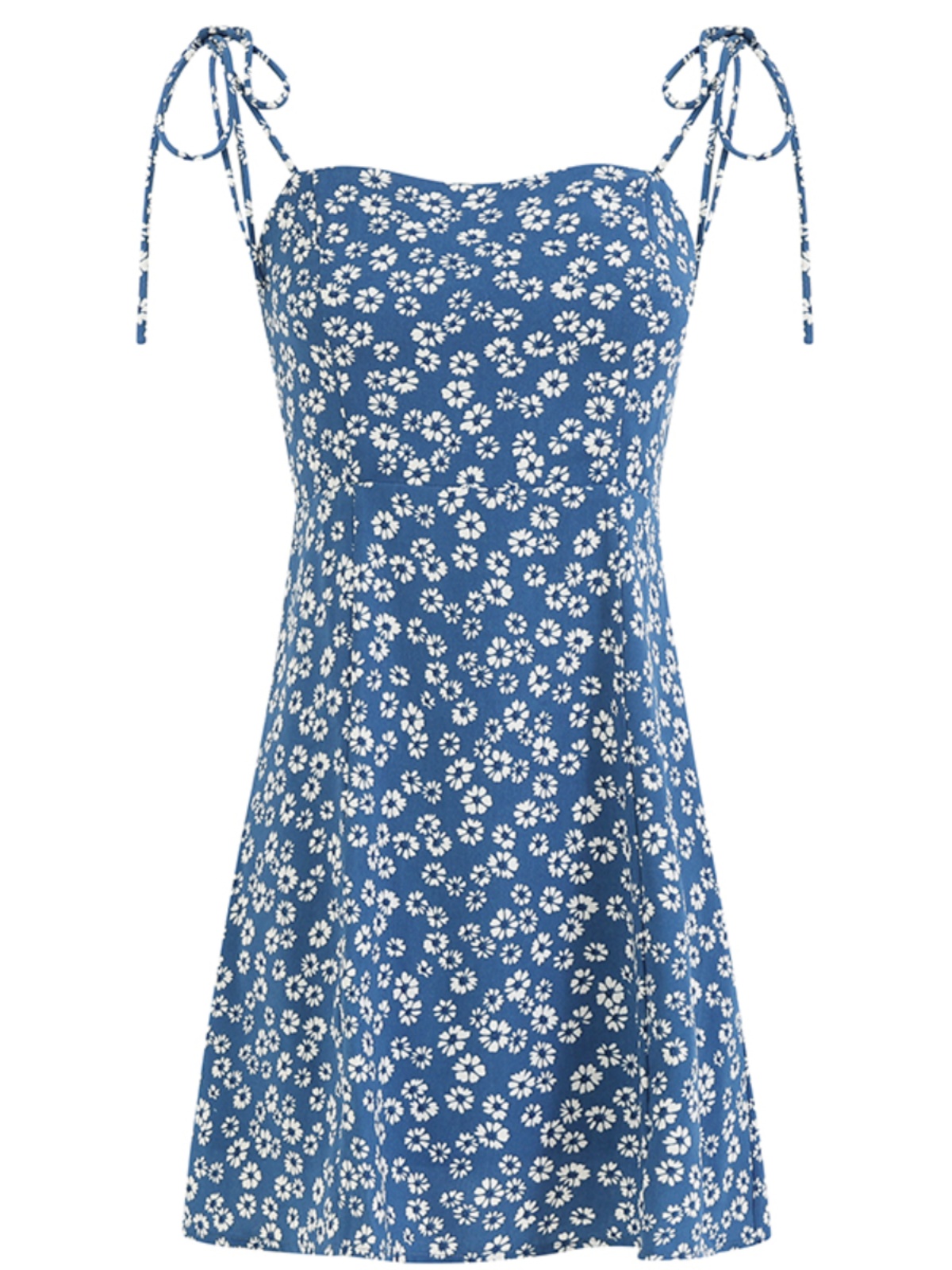 Petite Blue Floral Spaghetti Strap Mini Graduation Dress for Women
