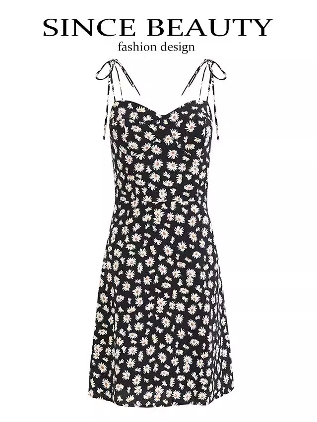 Floral Spaghetti Strap Black Dress Daisy Print ummer Women Dress High-quality product featuring thanksgiving dress, graduation dress, homecoming dresses and more. Modern design that fits the latest trends. Premium materials ensure durability and comfort. Order now for special offers! Product designed with attention to every detail. Suitable for all occasions and personal styles.