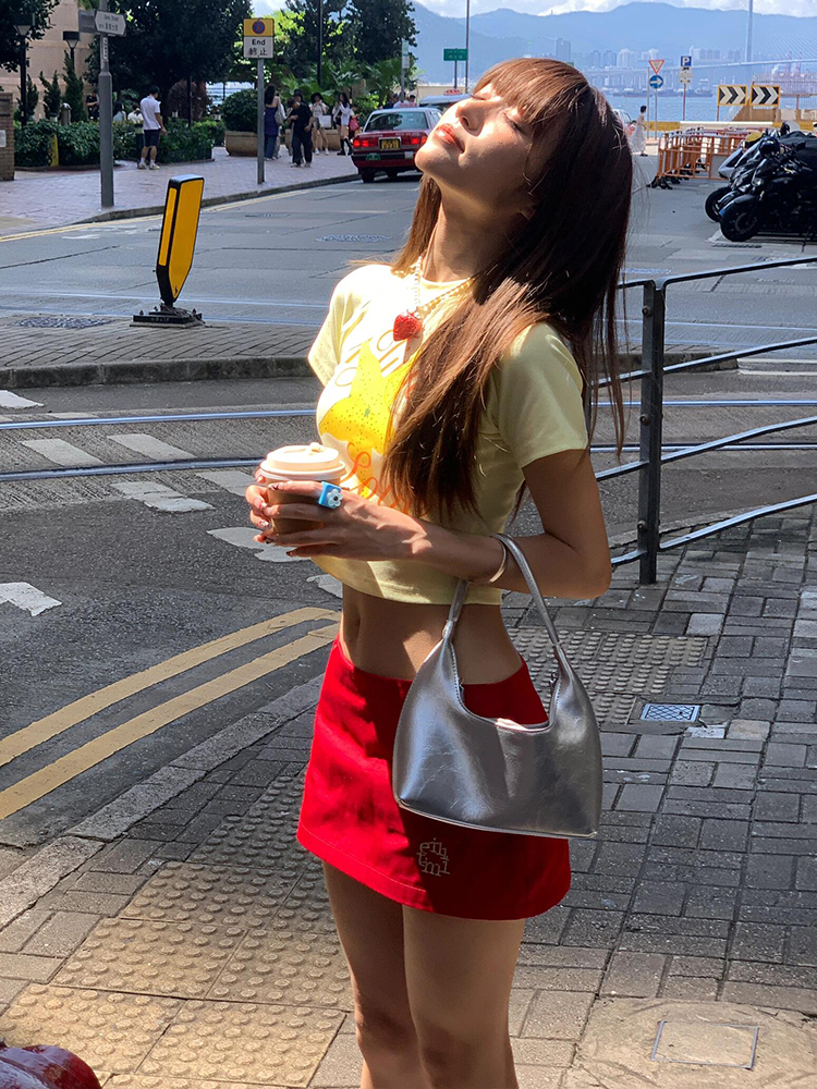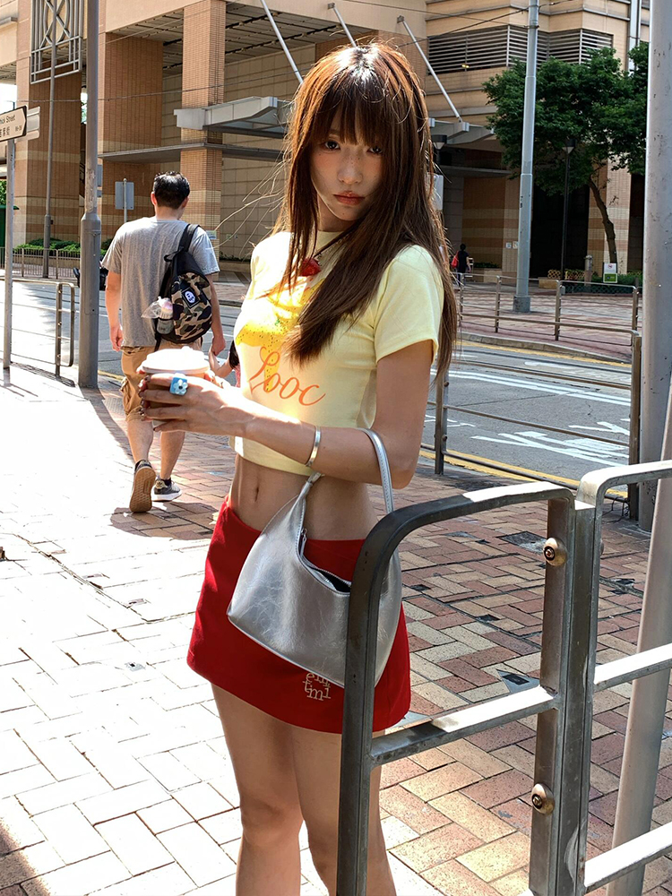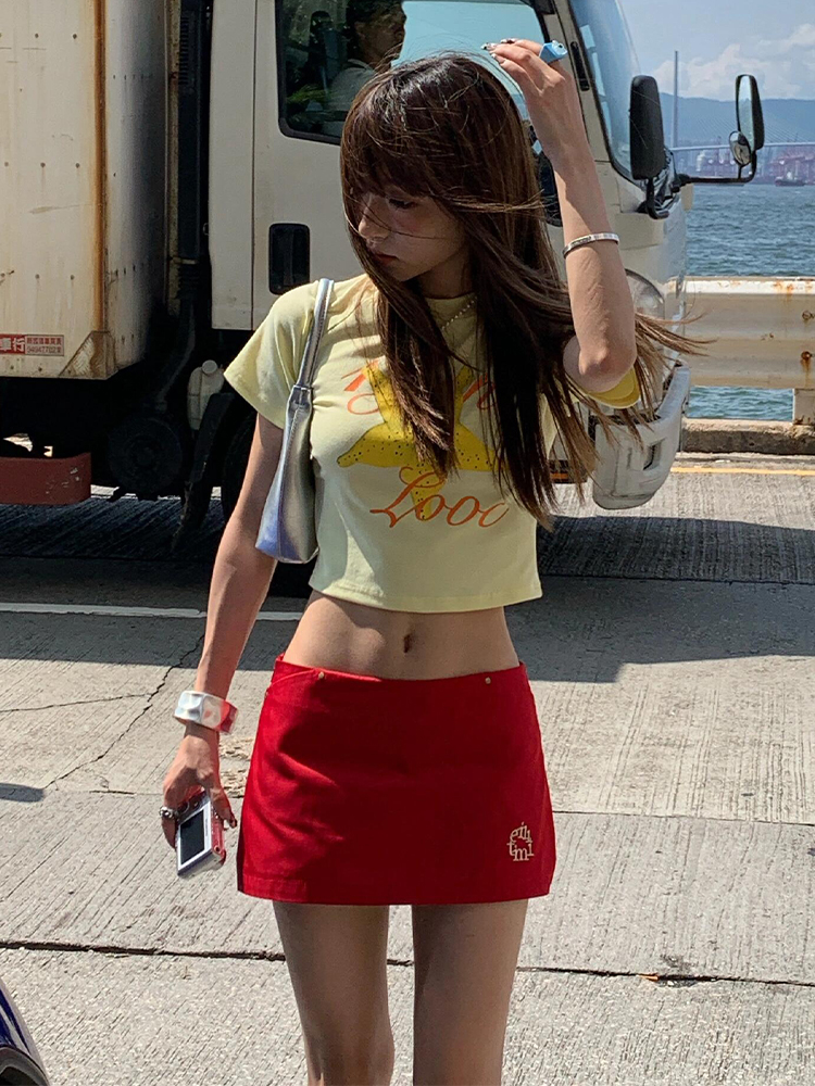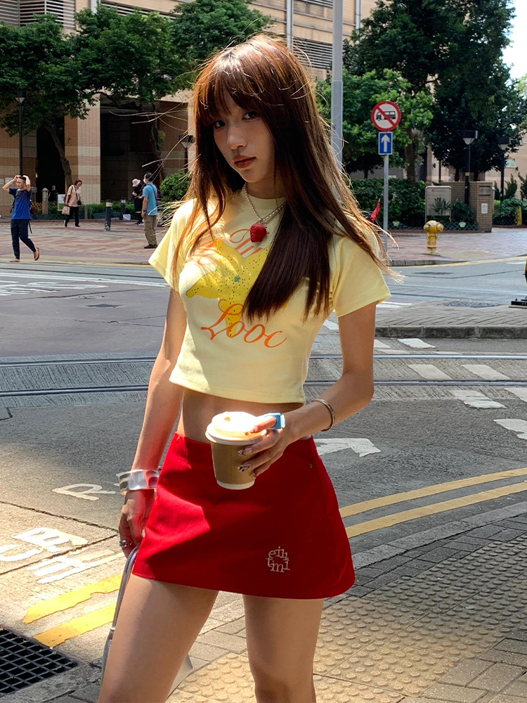 Fruit Print Fitted Waishort Sleeve Crop Top for Stylish Summer Fits