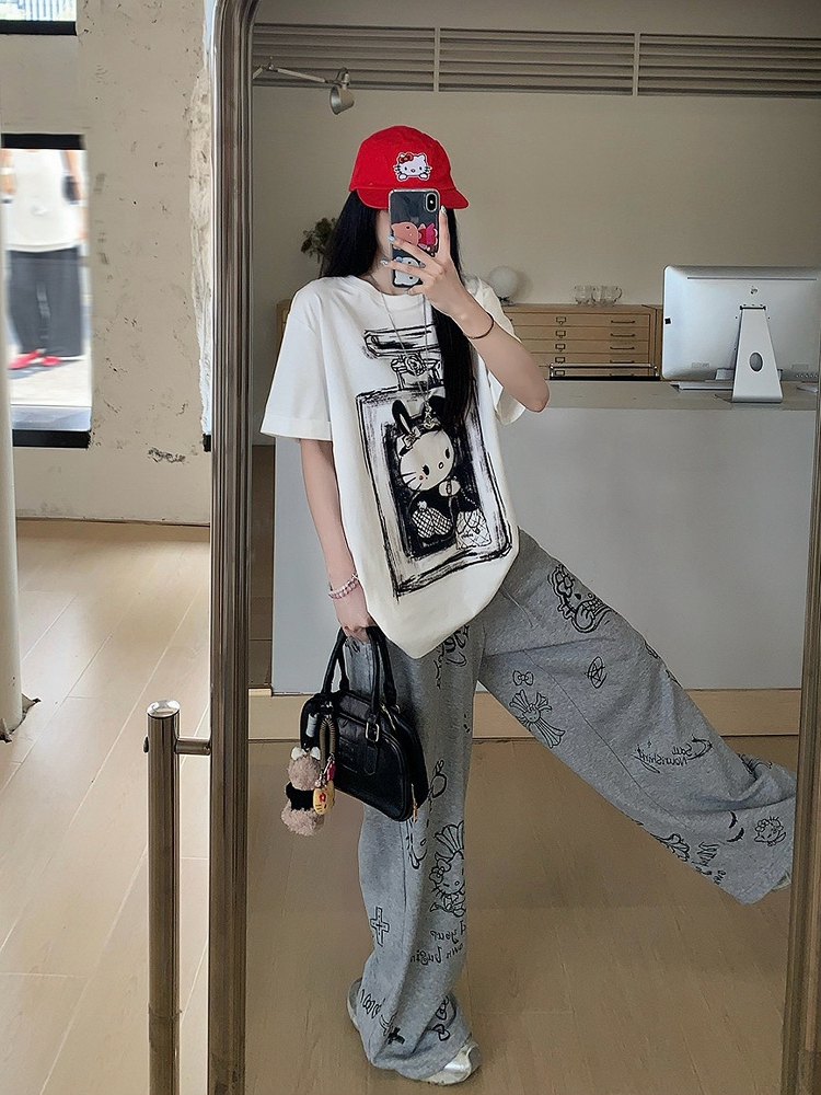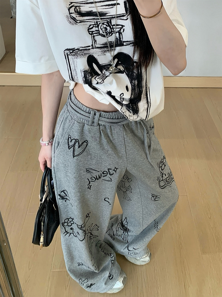 Stylish Gray Printed Wide Leg Casual Pants: Perfect Summer Fits for Women