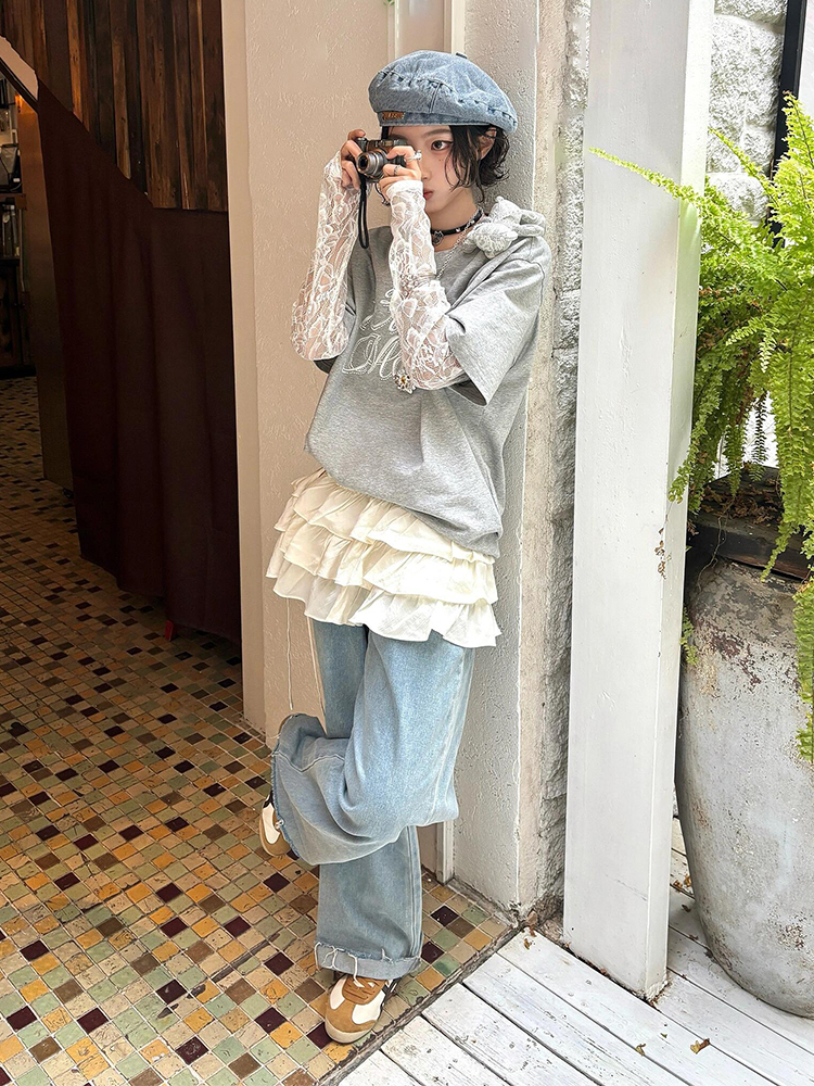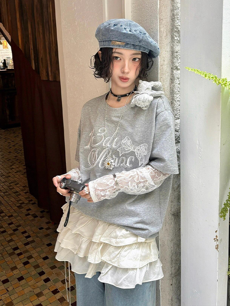 Gray Short Sleeve Women Summer Lace Neck Loose Casu – Casual Summer Outfits