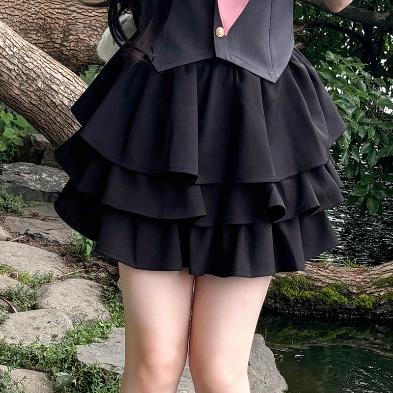Gray Women Summer Jk Set: Stylish Skirt Outfits with Puff and Cake Skirt