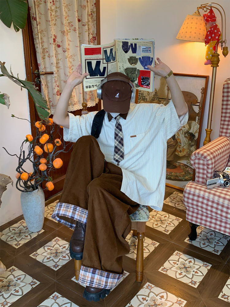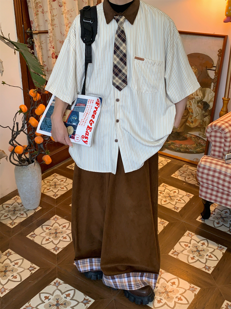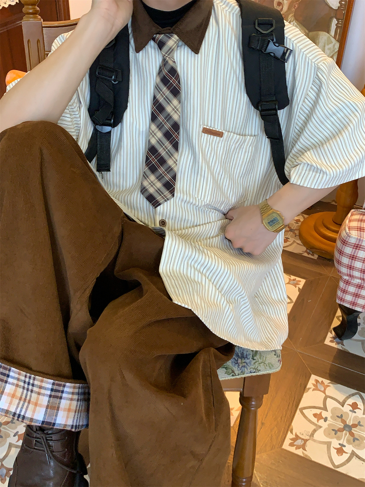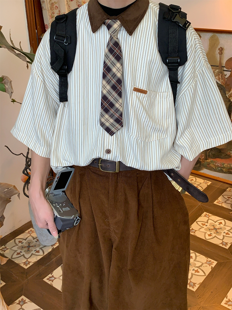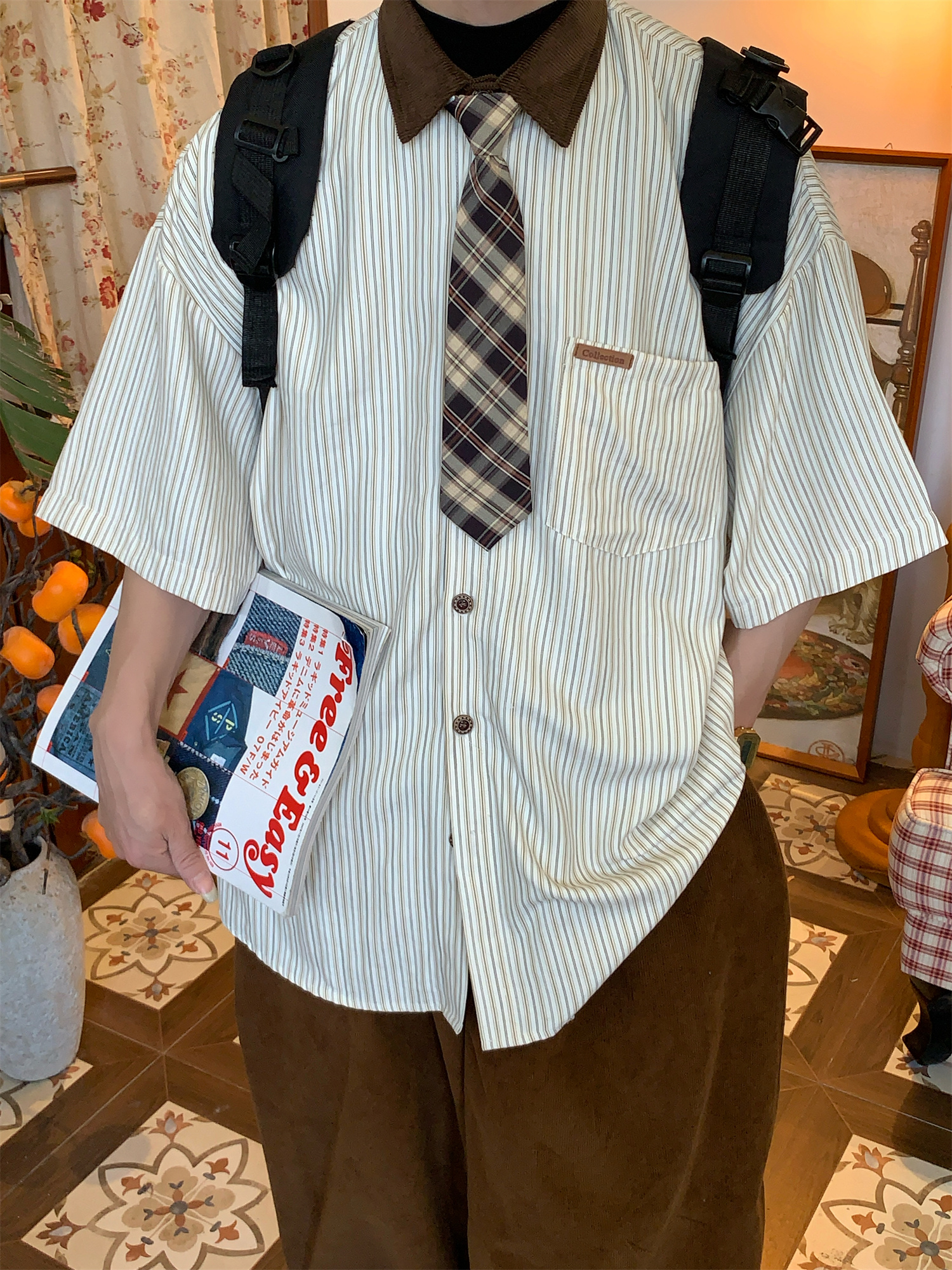 Vintage Striped Collar Casual Short Sleeve Shirt Men, Women, Loose Top High-quality product featuring casual outfits winter, casual fall outfits, casual winter outfits and more. Modern design that fits the latest trends. Premium materials ensure durability and comfort. Order now for special offers! Product designed with attention to every detail. Suitable for all occasions and personal styles.