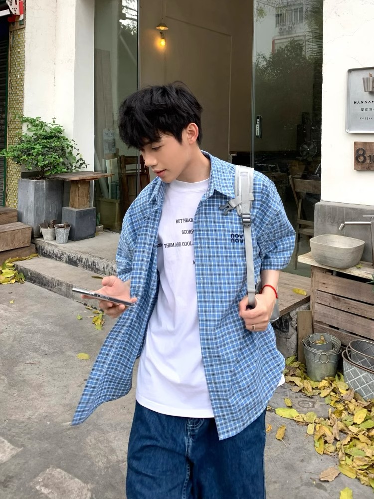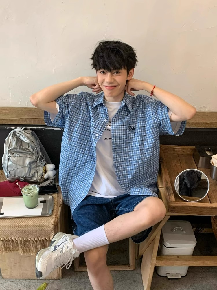 Blue Plaid Short Sleeve Shirt Men, Women, Summer Co – Casual Summer Outfits