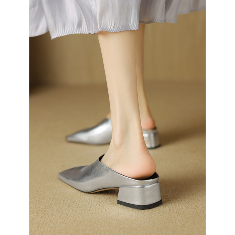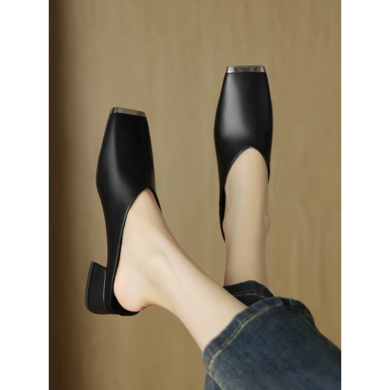 Genuine Leather Open Toe Half Slippers Chunky Heels Outdoor Mule Shoes Italian High-quality product featuring fall fashion, fall fits, warm fall outfits and more. Modern design that fits the latest trends. Premium materials ensure durability and comfort. Order now for special offers! Product designed with attention to every detail. Suitable for all occasions and personal styles.