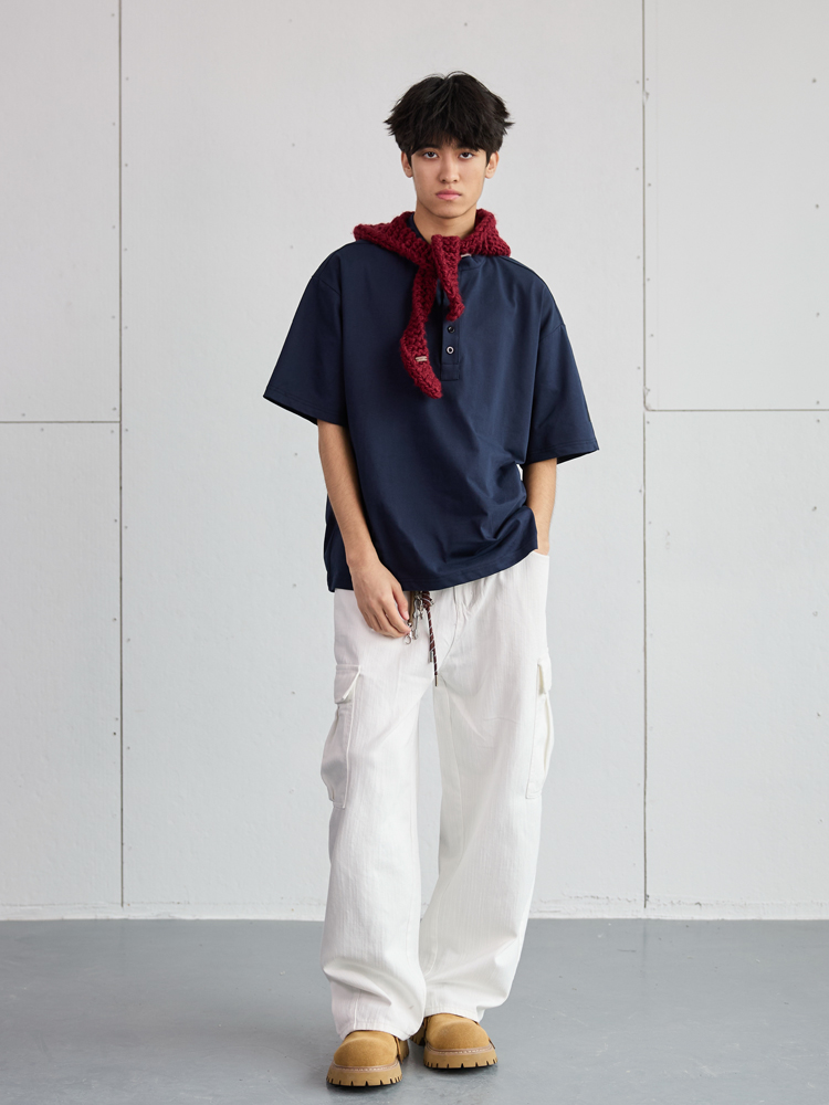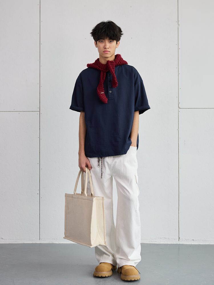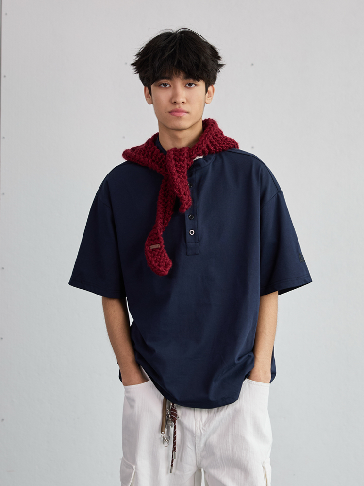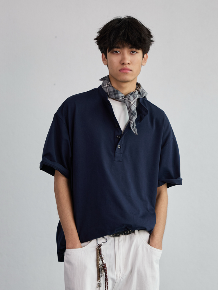 Heavyweight Oversized Henley Collar Short Sleeve Men Loose Fi – Summer Fits