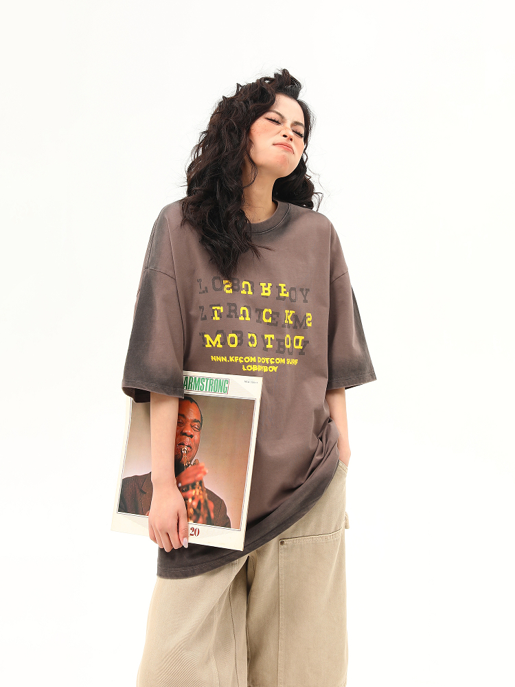 Vintage Wash Gradient Heavyweight Tee for Dynamic Duo Costumes Couples