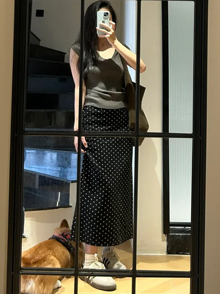 High Waisted Black Polka Dot Midi Skirt: Stylish Plus Size Summer Fits High-quality product featuring skirt outfits, fall fits, casual summer outfits and more. Modern design that fits the latest trends. Premium materials ensure durability and comfort. Order now for special offers! Product designed with attention to every detail. Suitable for all occasions and personal styles.