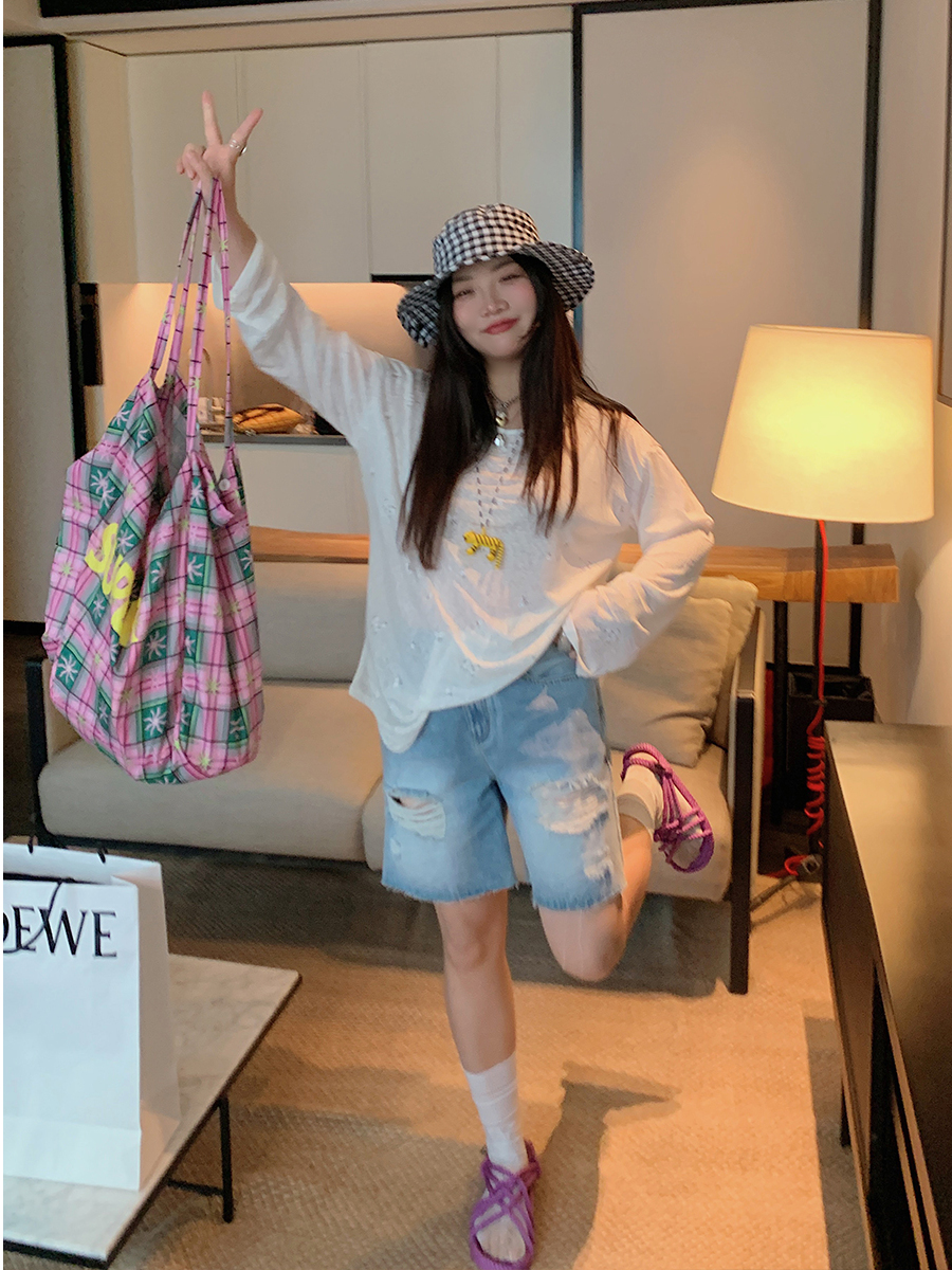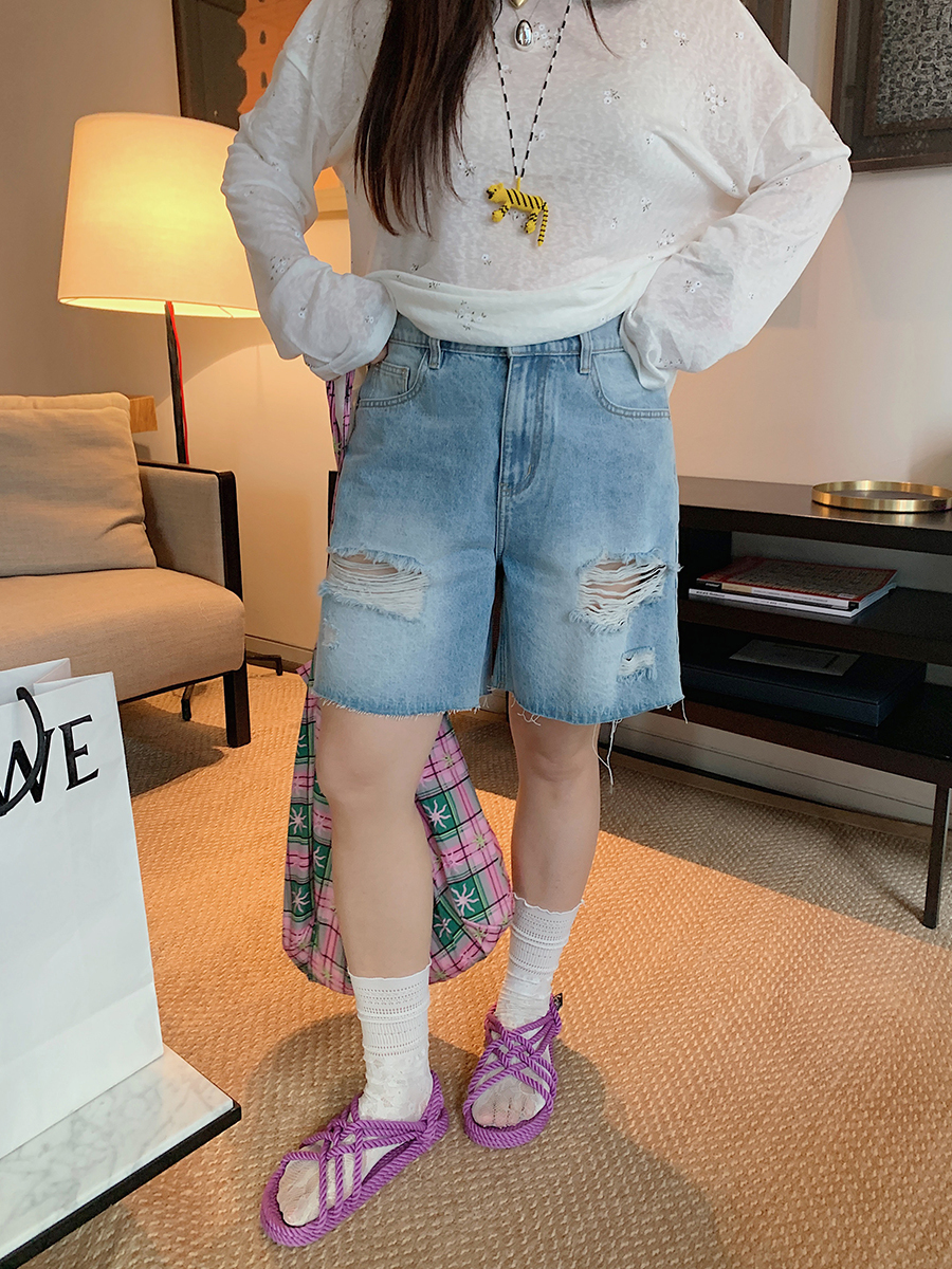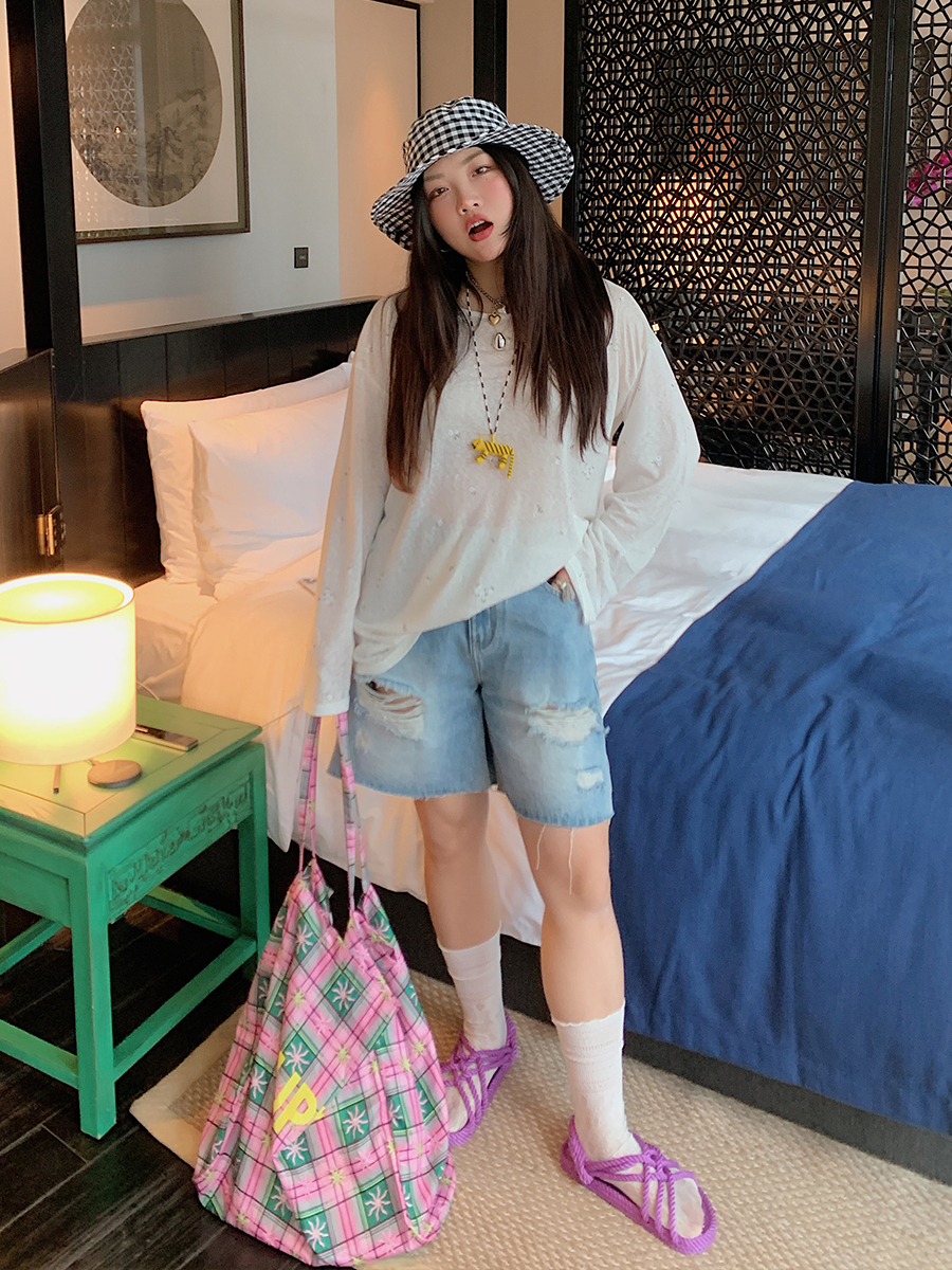 Step into summer with our High-Waisted Ripped Denim Shorts, designed specifically for curvy girls who want to embrace their style with confidence. These plus-size five-point shorts offer a flattering fit that accentuates your curves, while the trendy ripped detailing adds a touch of casual chic to your look. Perfect for any occasion, these shorts are versatile enough to pair with your favorite tops and sandals. Don’t miss out on this must-have addition to your wardrobe add to your cart today and elevate your summer fashion game!
