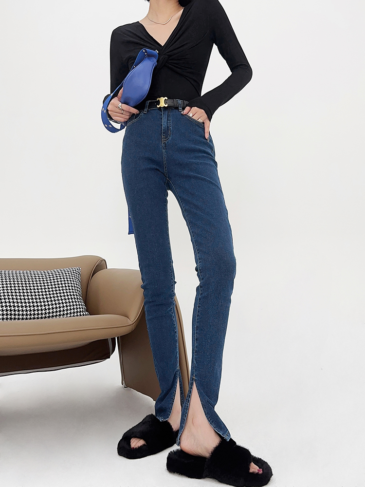 Lightweight High Waisted Skinny Jeans with Side Slits for Stylish Fall Fits