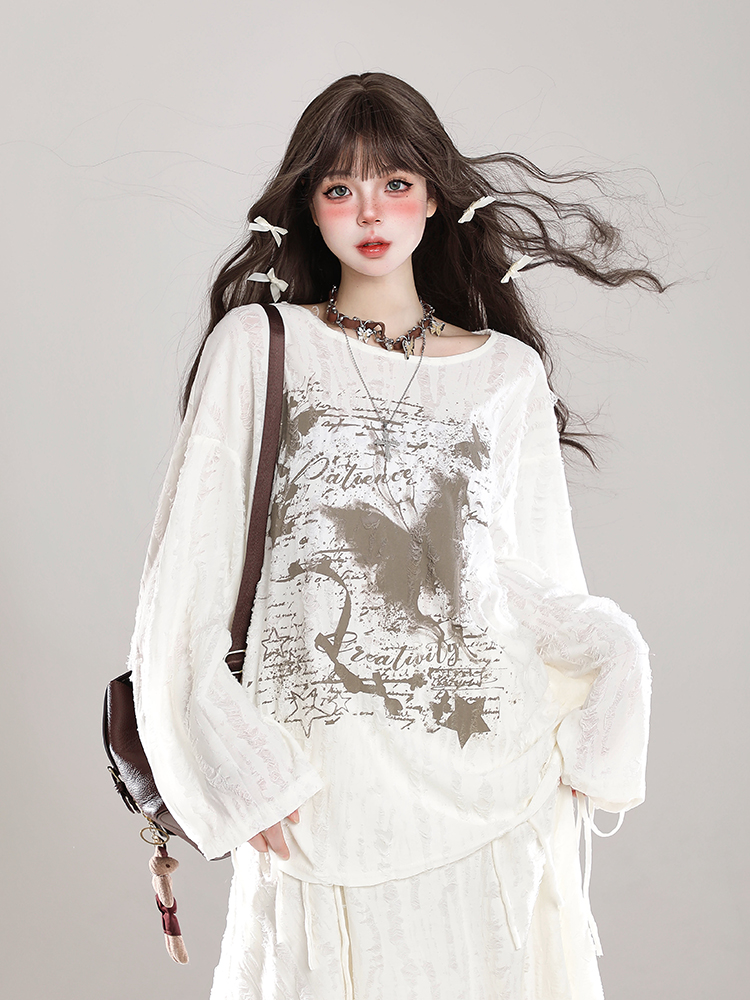 Elevate your spring wardrobe with our Holey Relaxed Long-Sleeve T-shirt for Women, designed in a trendy wasteland style. This chic sun protection cover-up features a loose fit that drapes beautifully, allowing for both comfort and breathability. Perfect for layering or wearing solo, its unique holey design adds an edgy touch to your look while keeping you cool under the sun. Don’t miss out on this versatile piece add it to your cart today and embrace effortless style!