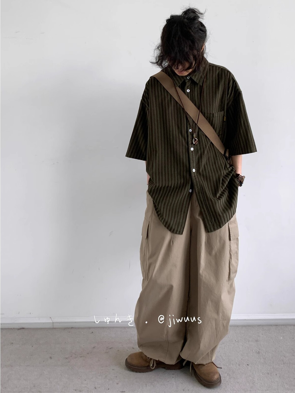 Retro Harajuku Striped Short Sleeve Shirt for Men and Women – Summer Fits