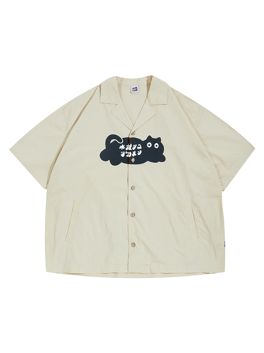 Retro Men Short Sleeve Logo Cat Printed Work Shirt Vintage Pi – Y2k Outfits