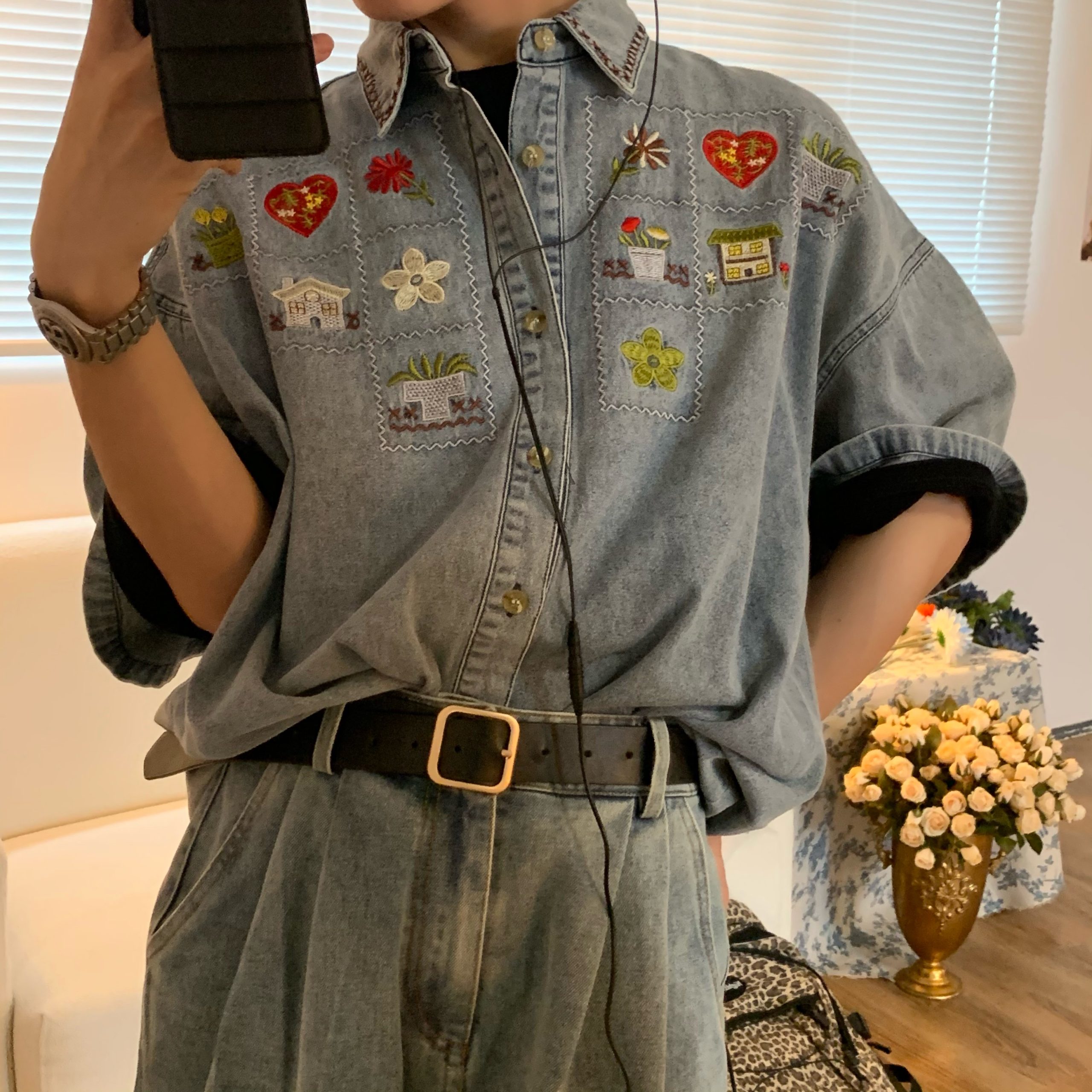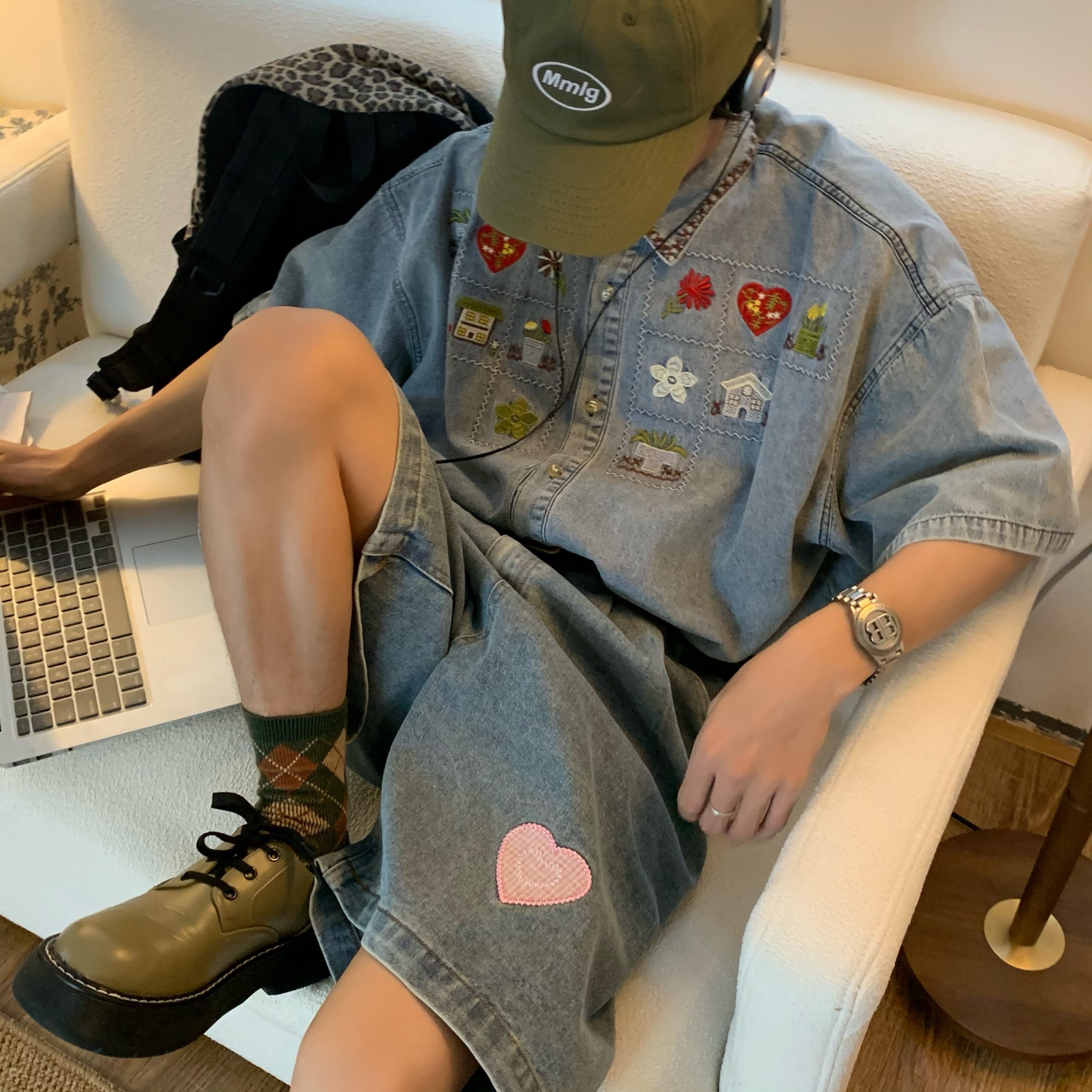 Retro Vintage Washed Denim Shirt Summer Short Sleeve Couple Top pired High-quality product featuring vacation outfits, 90s fashion, fall clothing trends 2025 and more. Modern design that fits the latest trends. Premium materials ensure durability and comfort. Order now for special offers! Product designed with attention to every detail. Suitable for all occasions and personal styles.
