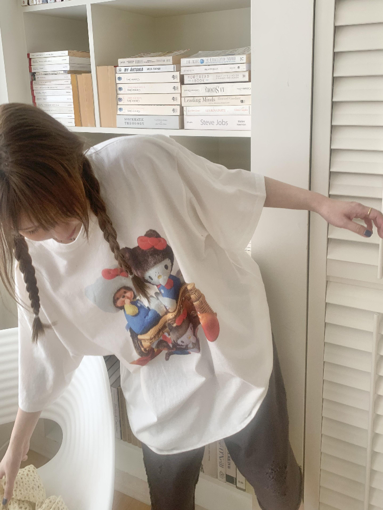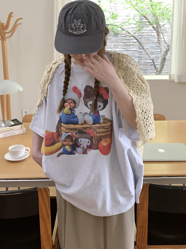 Korean Casual Kitty Princess Cartoon Print Loose Cotton Short Sleeve Top High-quality product featuring simple halloween costume, casual outfits, easy costume and more. Modern design that fits the latest trends. Premium materials ensure durability and comfort. Order now for special offers! Product designed with attention to every detail. Suitable for all occasions and personal styles.