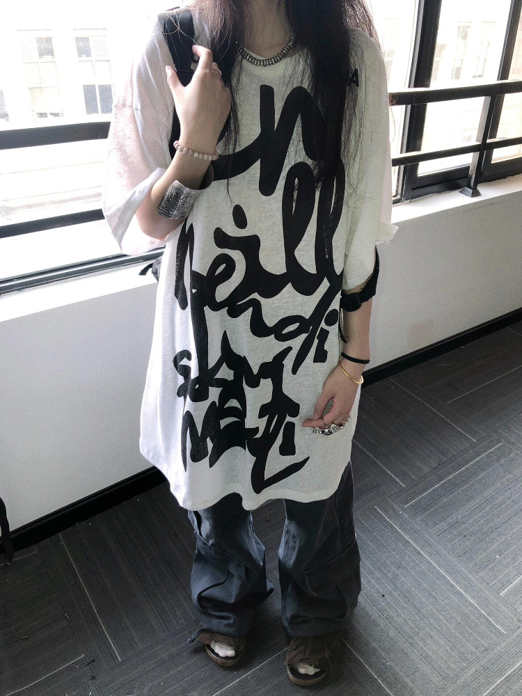 This arrived quickly and the first thing I noticed was— packaging that kept everything pristine, Small touch, big difference. Glad I picked Korean Casual Outfits: Loose Fit Pure Cotton Graffiti Letter Print Top up.