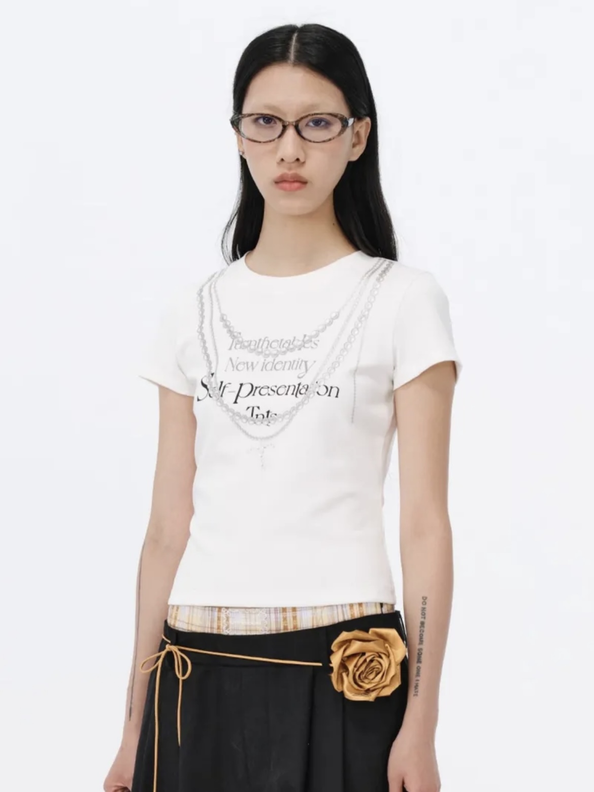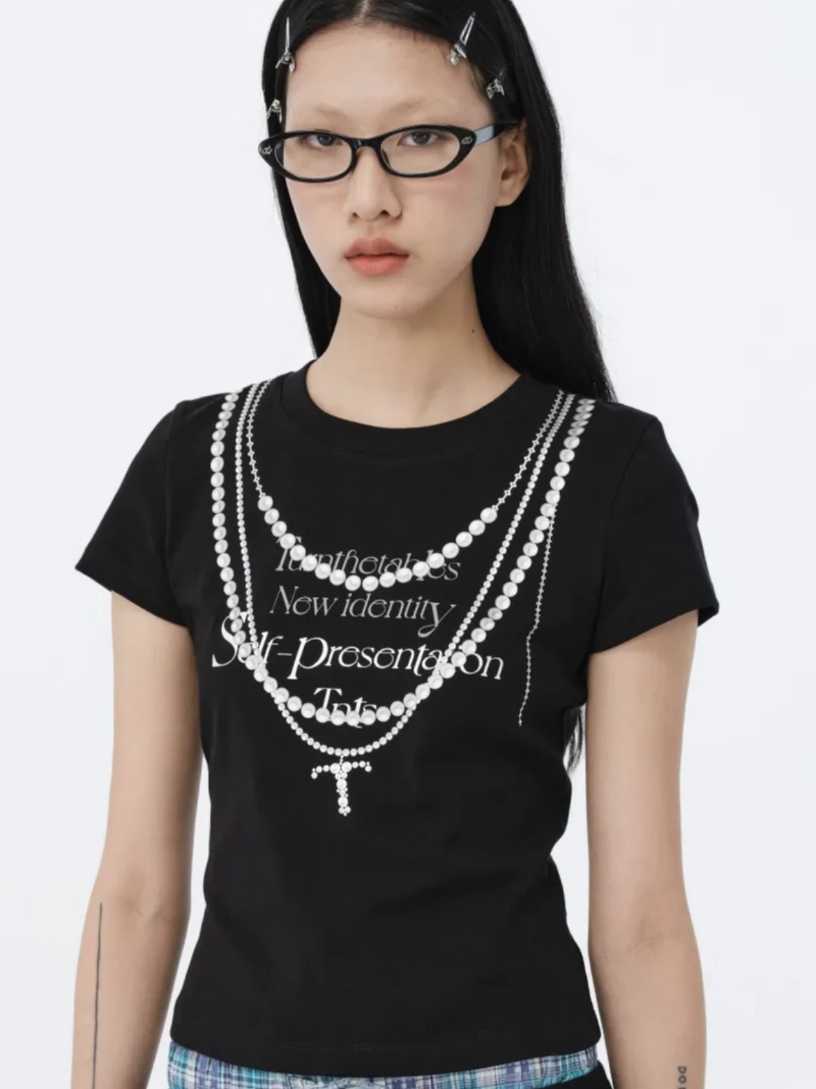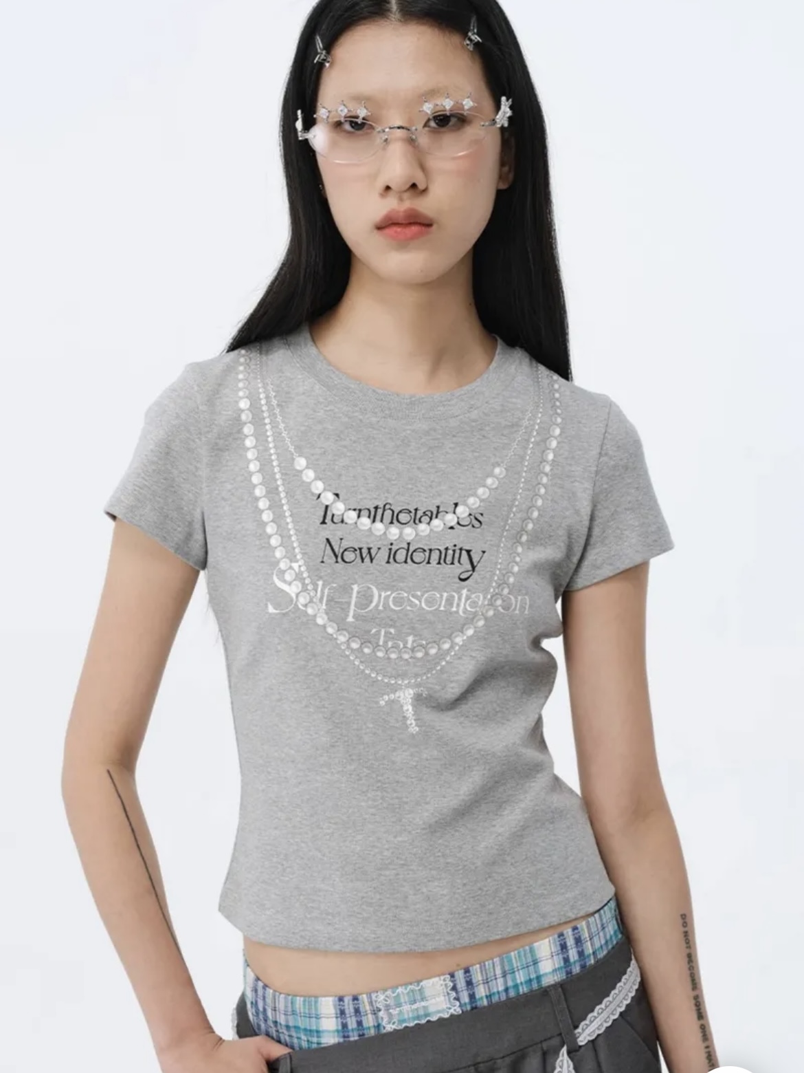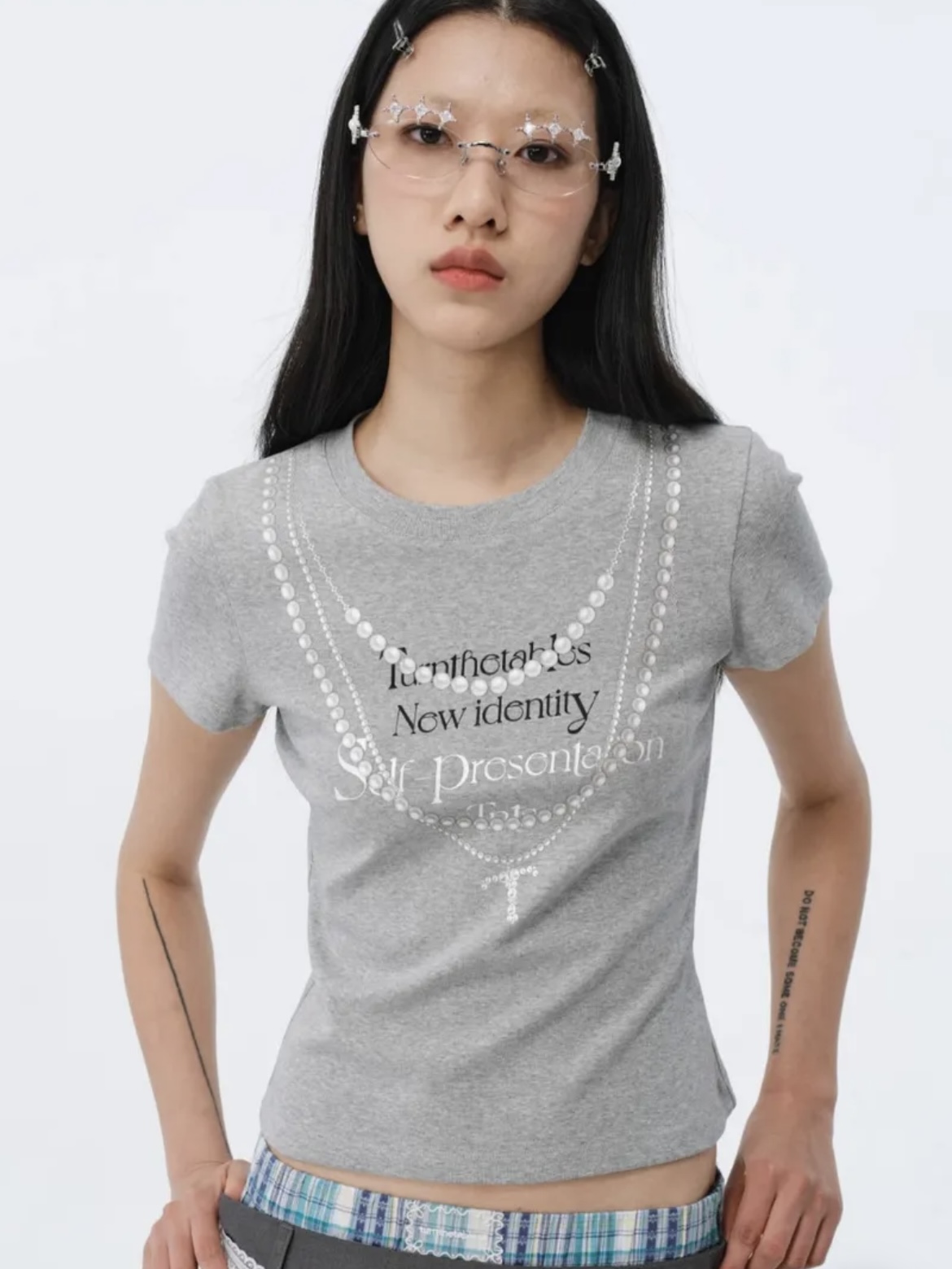 Korean Creative Pearl Necklace Slogan Short Sleeved Slim Fit High Stretch Cotton High-quality product featuring outfit inspo, outfit ideas, pretty outfits and more. Modern design that fits the latest trends. Premium materials ensure durability and comfort. Order now for special offers! Product designed with attention to every detail. Suitable for all occasions and personal styles.