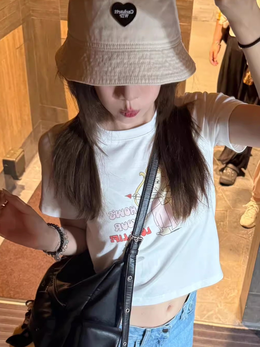 Korean Cupid Cartoon Print Off Shoulder Cropped Slim Fit Lightweight Cotton Short Sleeve High-quality product featuring simple halloween costume, going out outfits, simple costume ideas and more. Modern design that fits the latest trends. Premium materials ensure durability and comfort. Order now for special offers! Product designed with attention to every detail. Suitable for all occasions and personal styles.