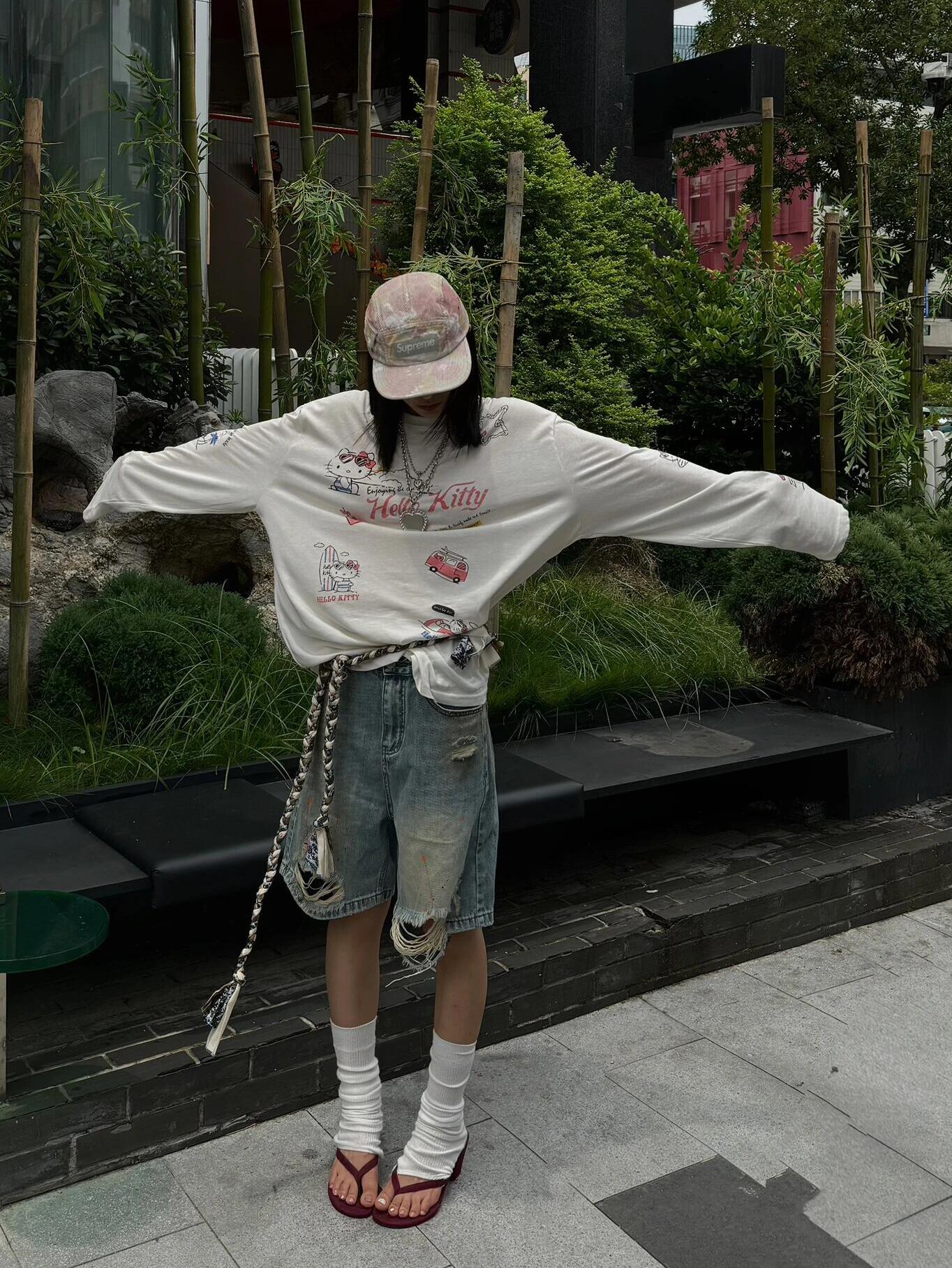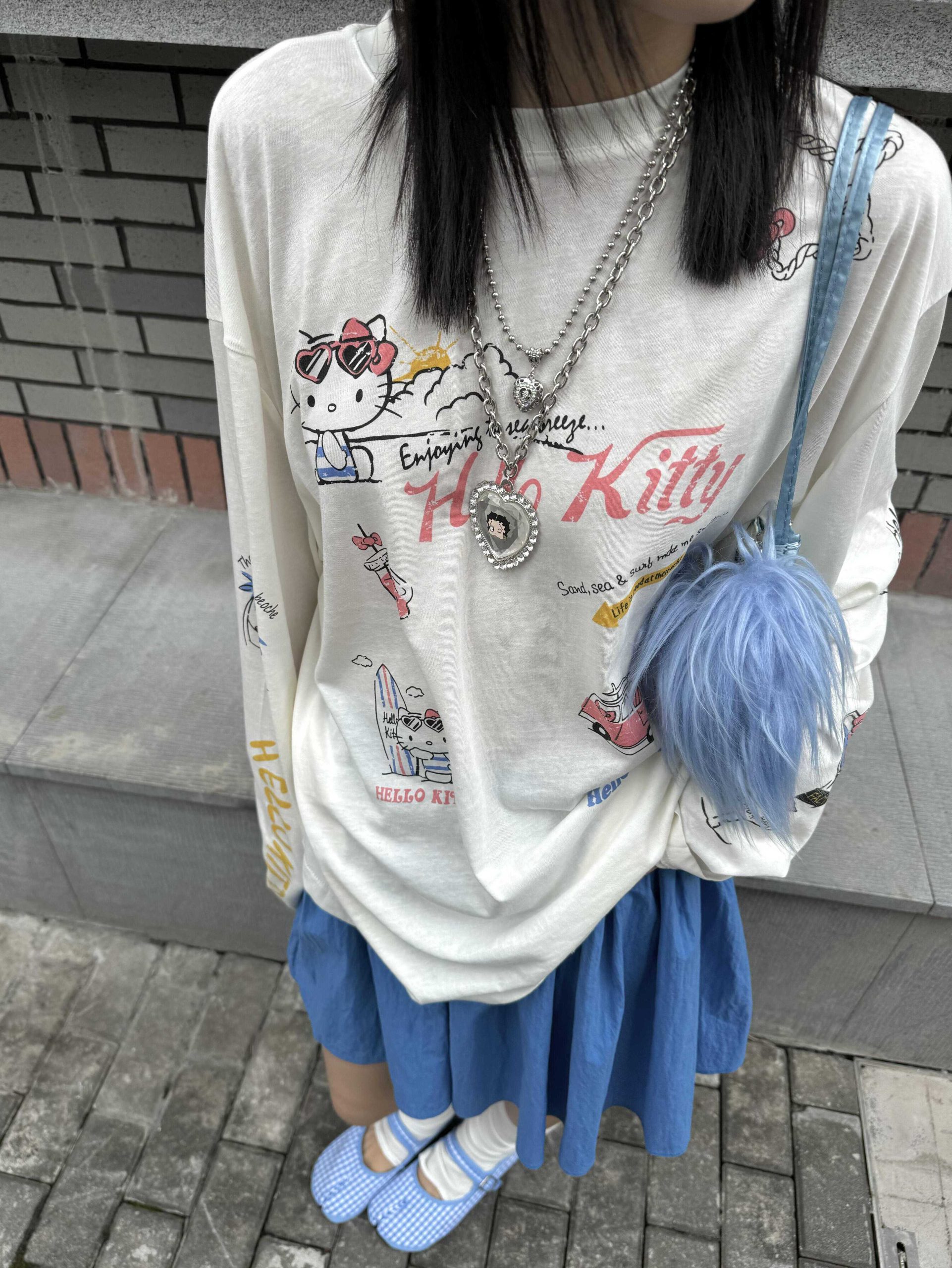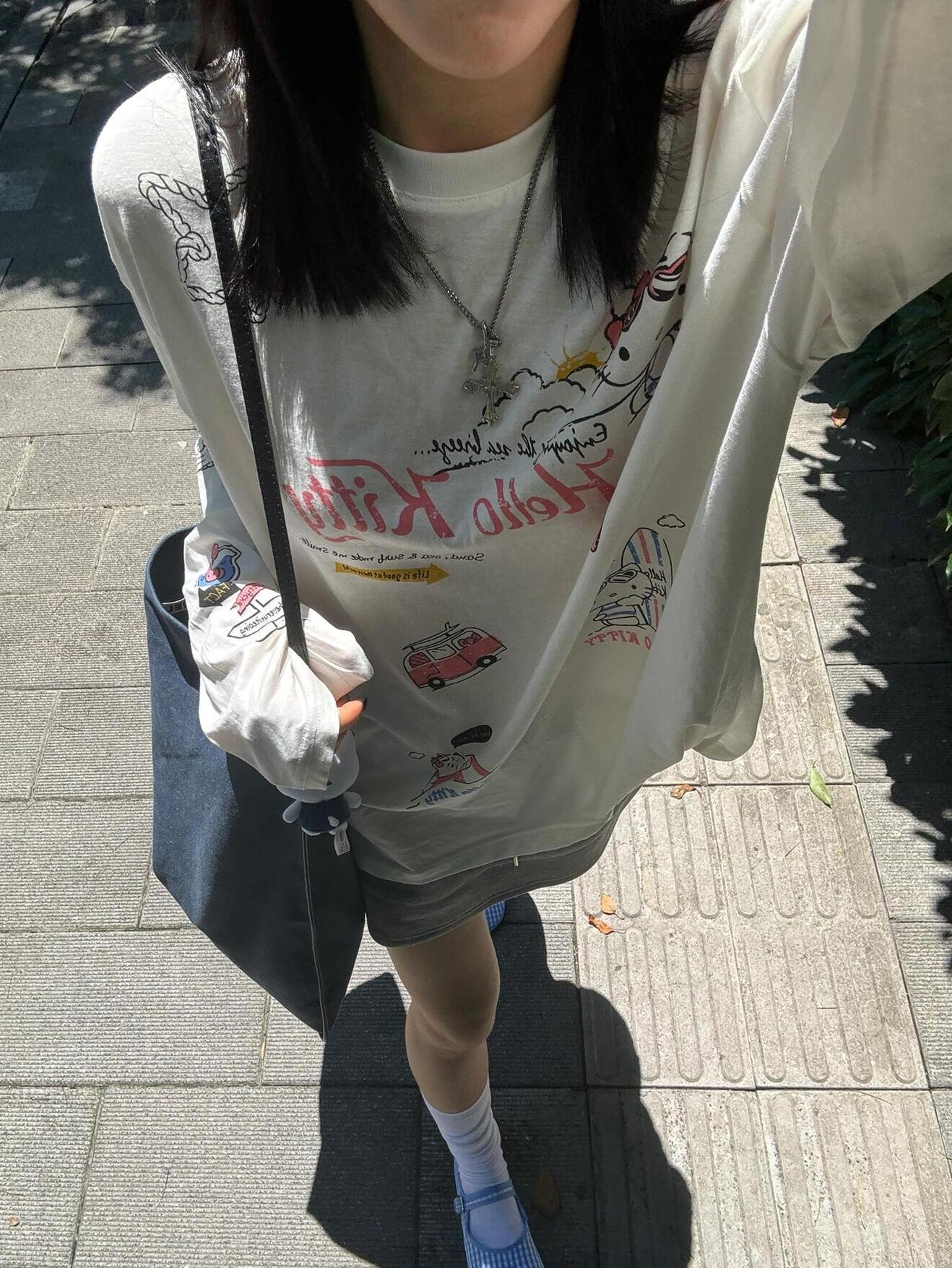 Korean Kitty Cat Print Cotton Shirt: Perfect for Casual Ou – Casual Outfits
