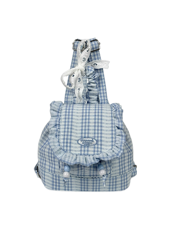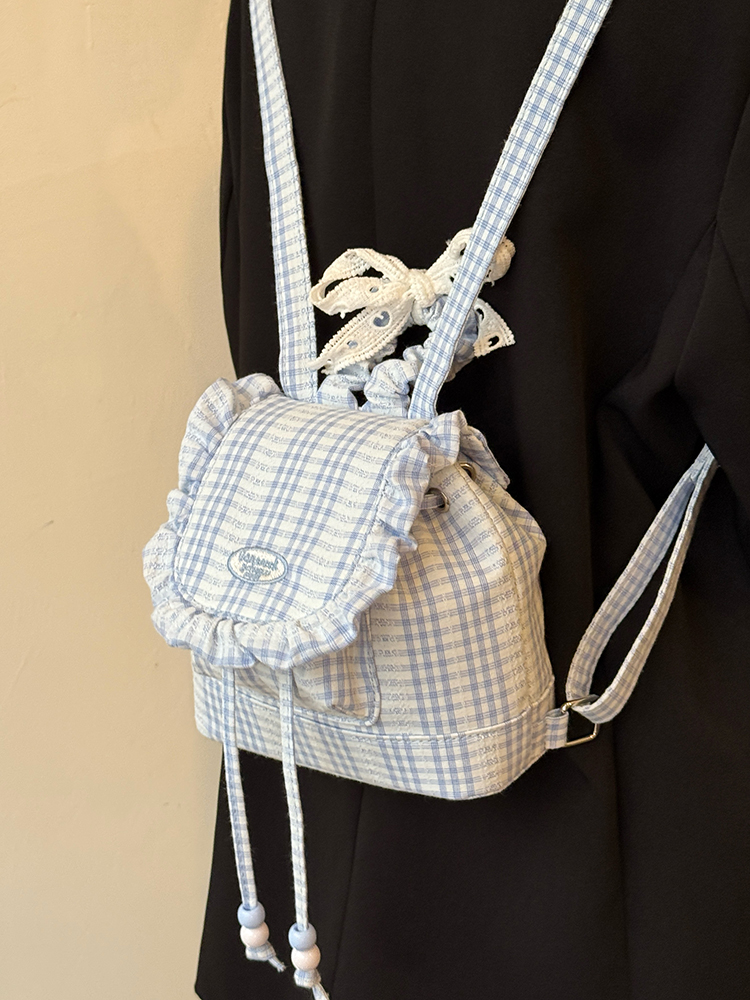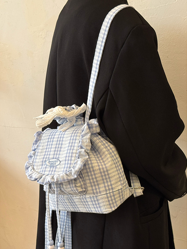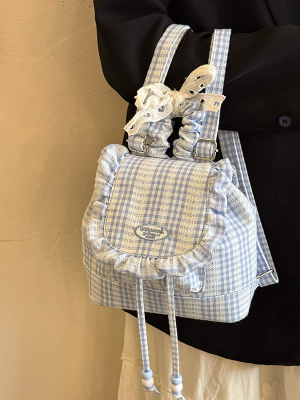 Korean Lace Checkered Mini Backpack Ruffles | Doubl – Cute Everyday Outfits