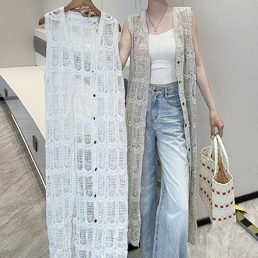 Elevate your wardrobe with our Korean-Style Lace Hollow Knitted Cardigan, a stunning vintage versatile long vest top perfect for both vacation adventures and everyday elegance. Crafted with delicate lace details and a flattering fit, this cardigan effortlessly adds a touch of charm to any outfit, whether layered over a casual tee or paired with a chic dress. Experience the perfect blend of style and comfort add this essential piece to your collection today and embrace a fashionable look all season long. Shop now!
