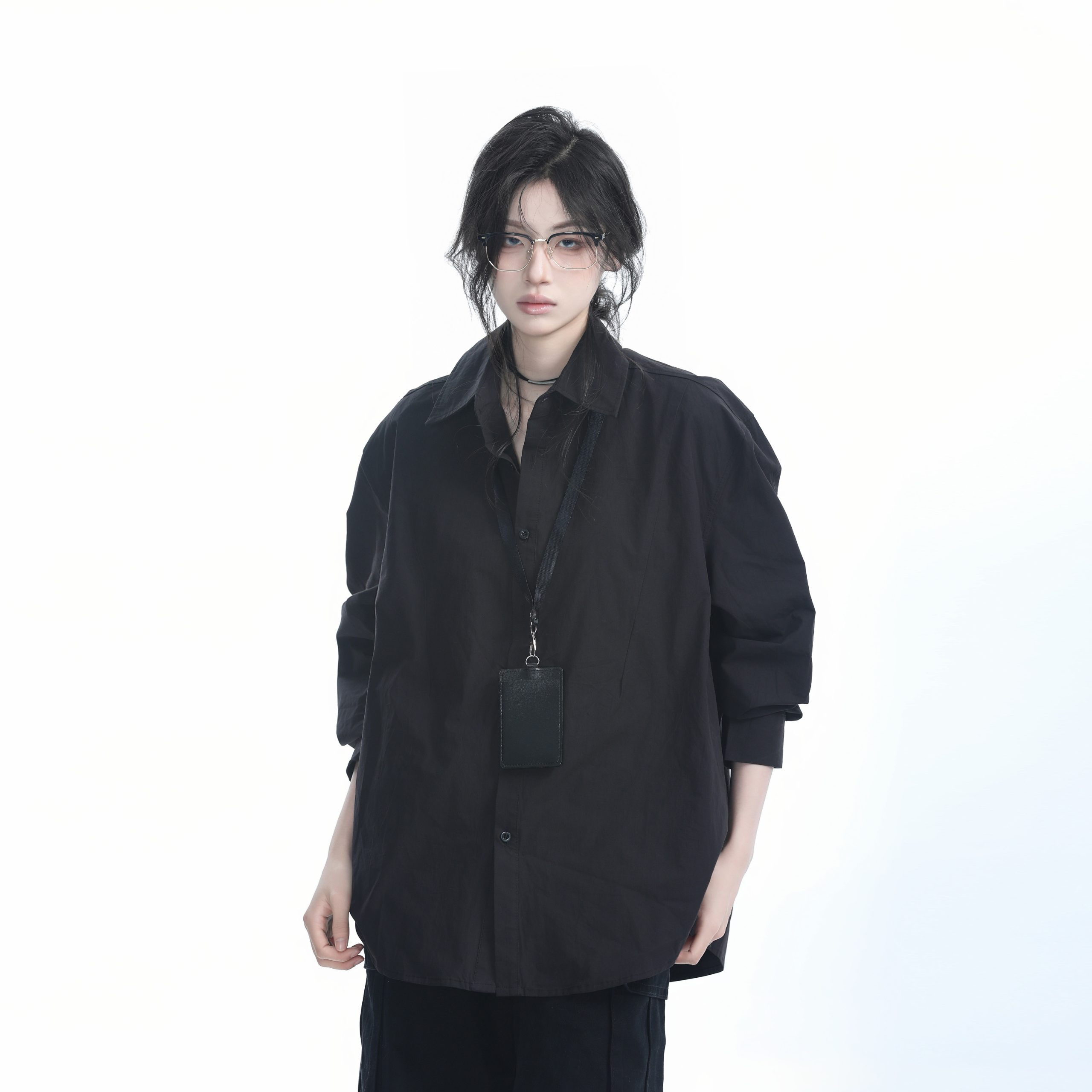 Korean Oversized Black Long Sleeve Shirt Women Casual – Fall Outfits Women