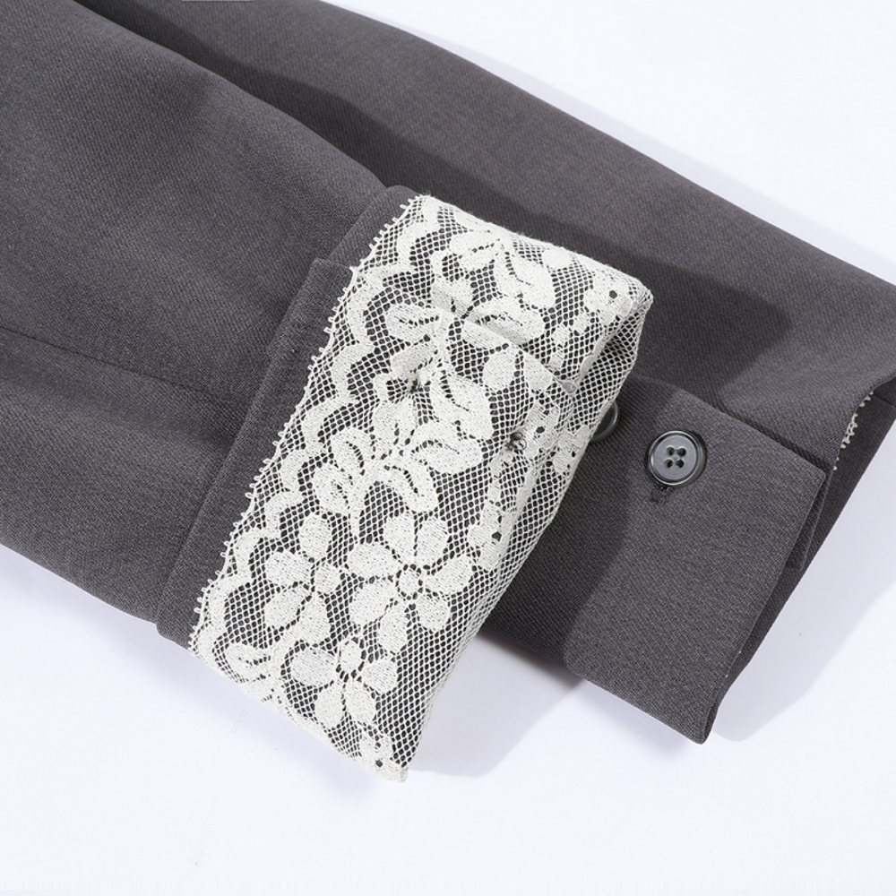 Elevate your spring wardrobe with our Lace Spliced Suit Jacket for Women, a chic gray blazer that captures the essence of trendy 90s-inspired fashion. This tailored piece features delicate lace accents that add a touch of elegance, while its flattering fit ensures you look effortlessly stylish for any occasion. Perfect for dressing up or down, this versatile jacket is a must-have for those who appreciate modern sophistication. Don’t miss out add this stunning blazer to your cart today and redefine your style!