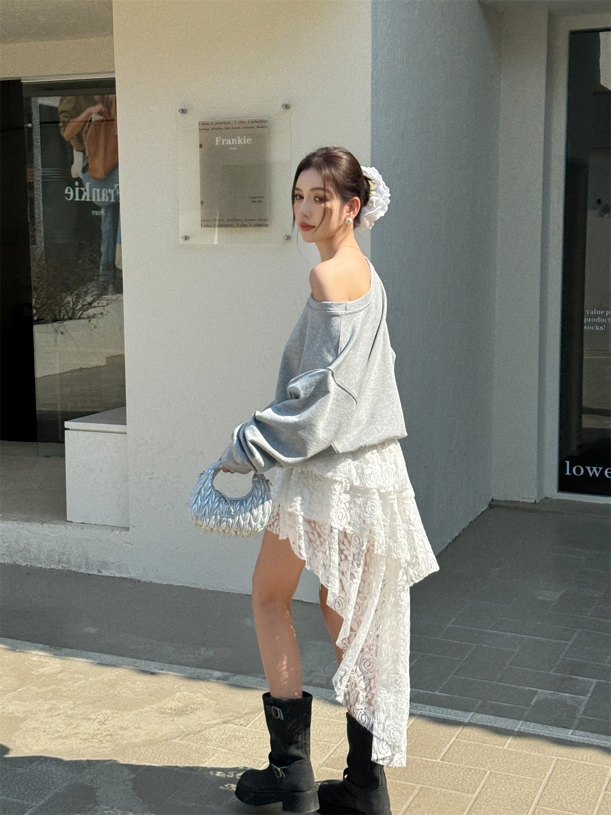 Lightweight Gray Off Shoulder Women Loose Fit Long Sleeve Top, Spring pired High-quality product featuring spring outfits, fall outfits women, work outfits women and more. Modern design that fits the latest trends. Premium materials ensure durability and comfort. Order now for special offers! Product designed with attention to every detail. Suitable for all occasions and personal styles.