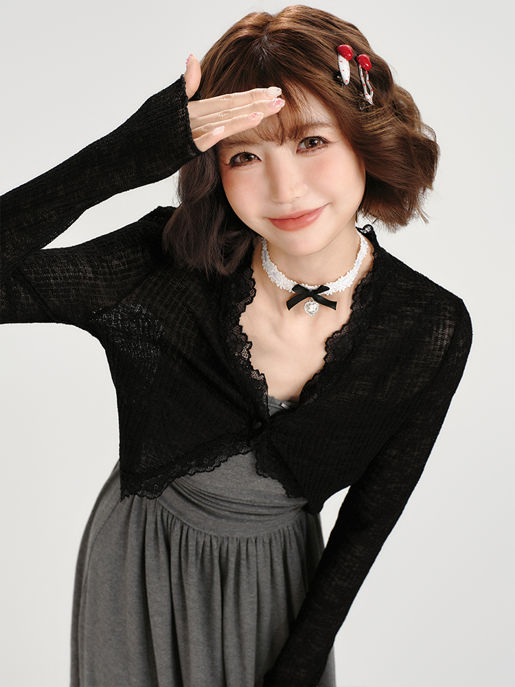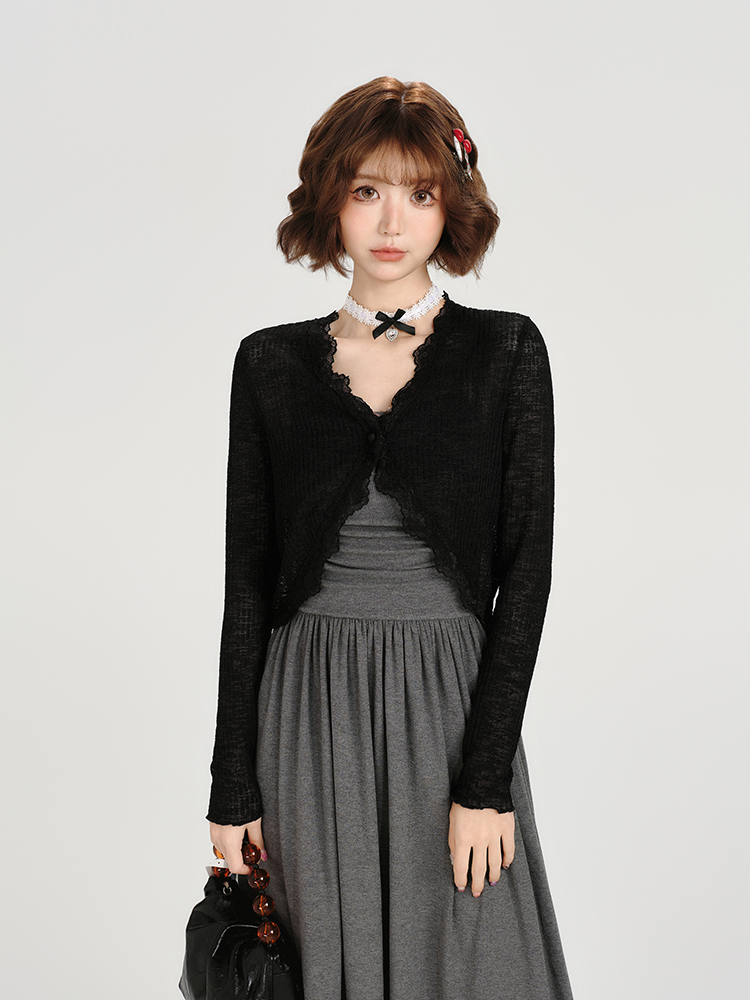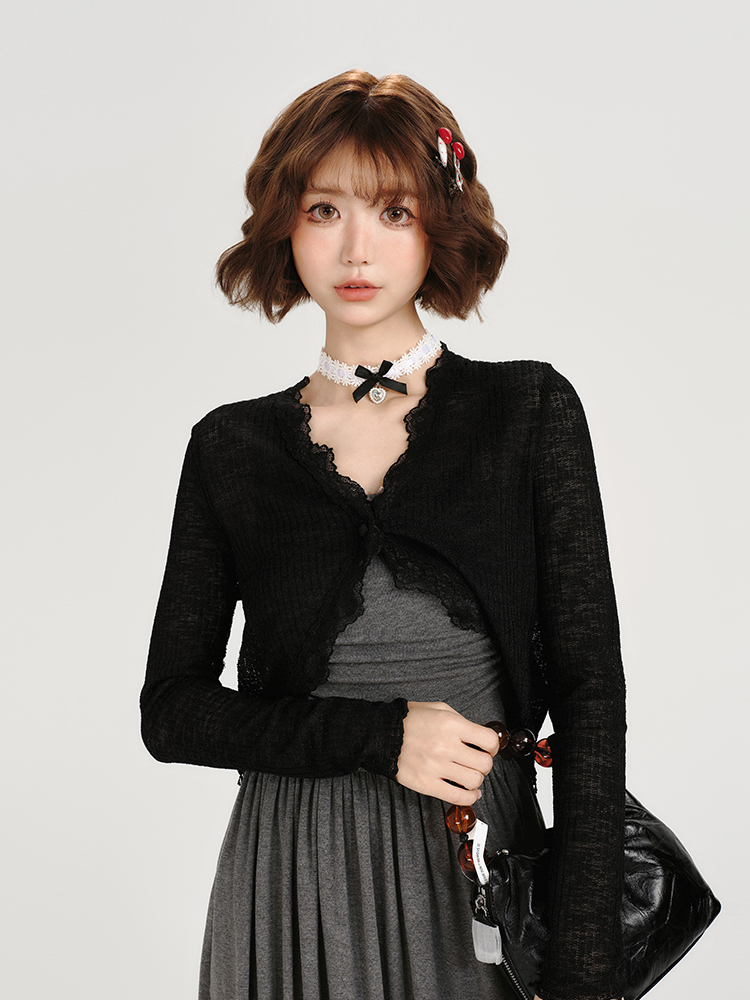 Lightweight Knitted Cardigan for Women: Retro Lace Trim Summer Fits Shawl