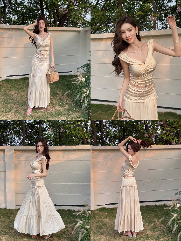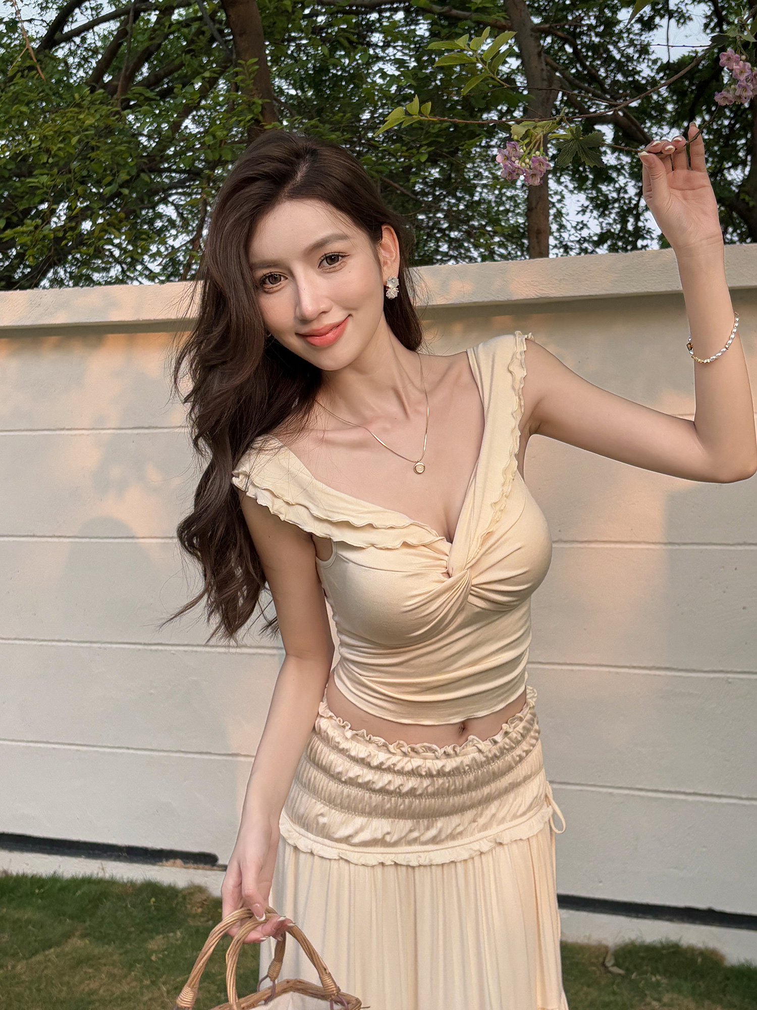 Lightweight One Shoulder Top Ear Shaped Ruffles, Elastic Long Skirt Set Summer High-quality product featuring skirt outfits, fall fits, outfit inspo fall and more. Modern design that fits the latest trends. Premium materials ensure durability and comfort. Order now for special offers! Product designed with attention to every detail. Suitable for all occasions and personal styles.