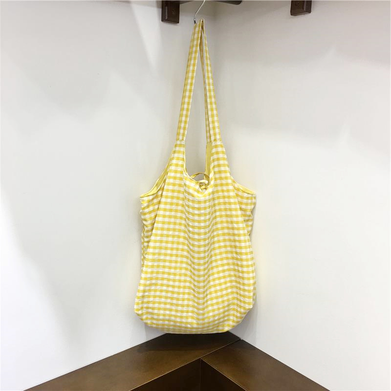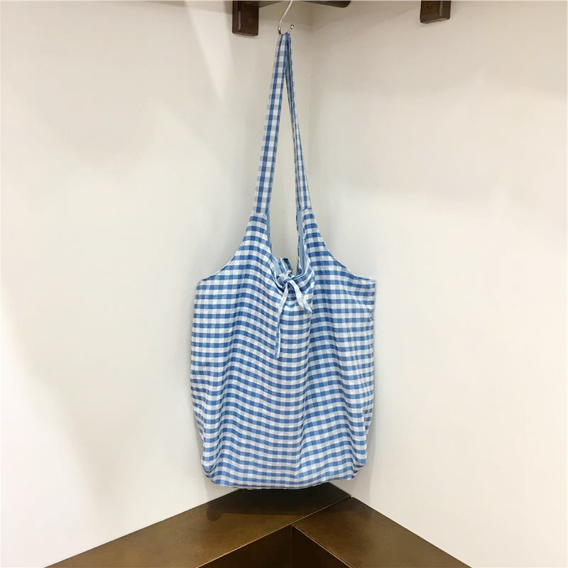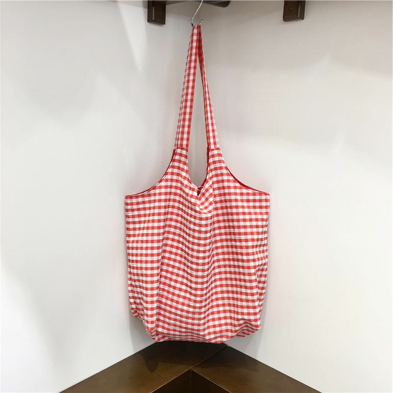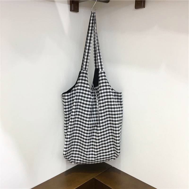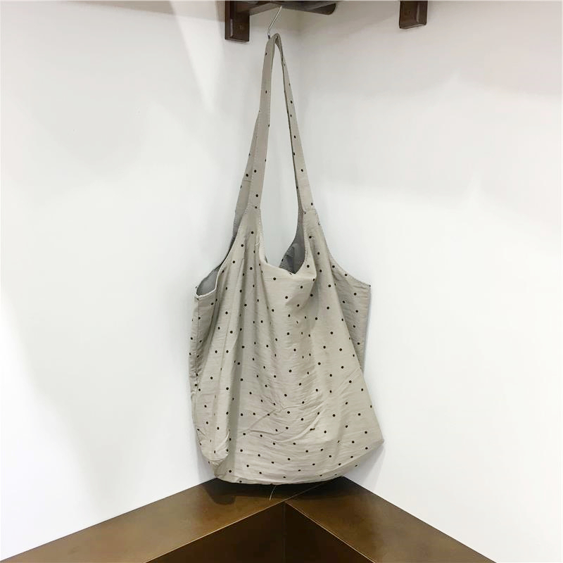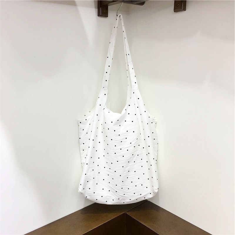 Lightweight Polka Dot Checkered Canvas Shopping Bag Large Cap – Summer Fits
