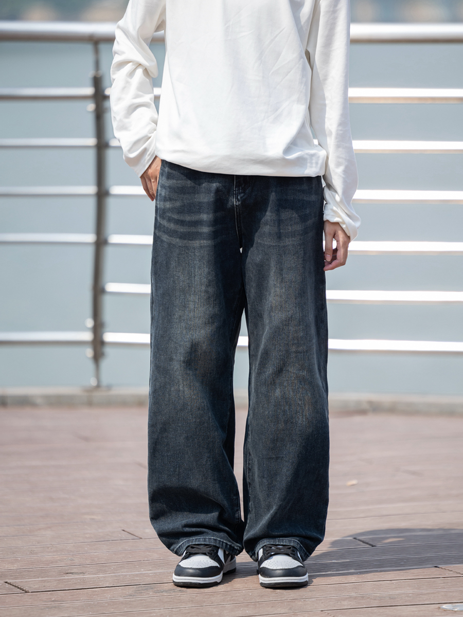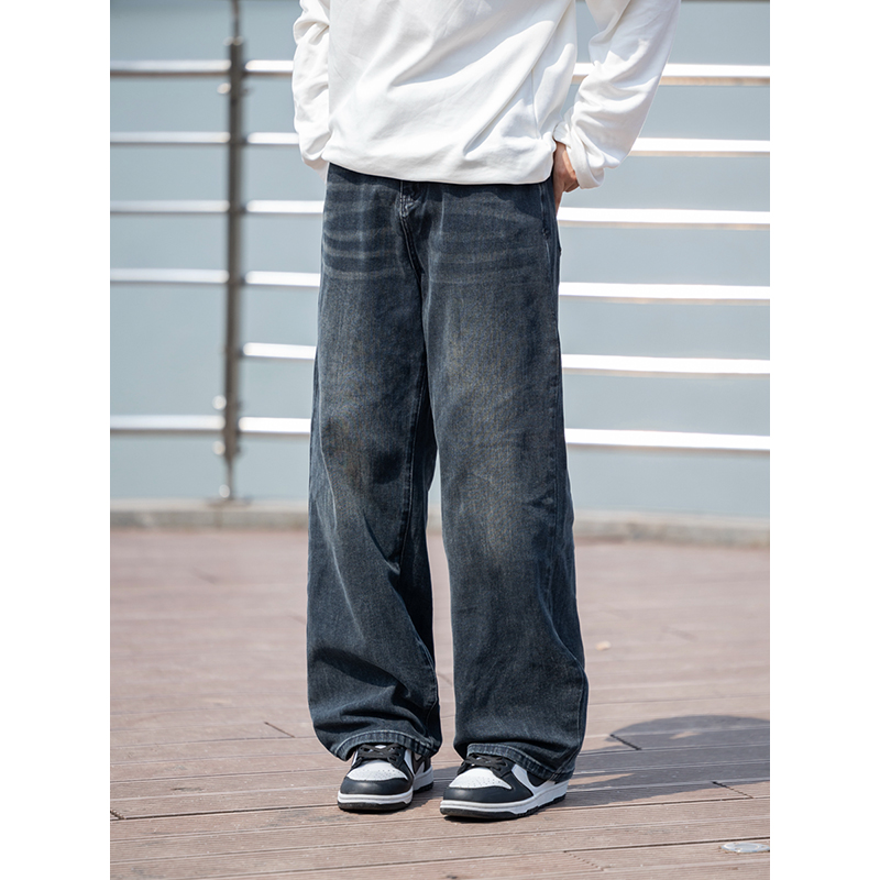 Men Retro Gradient Washed Denim Pants Loose Straight Wide Leg a – Fall Fits