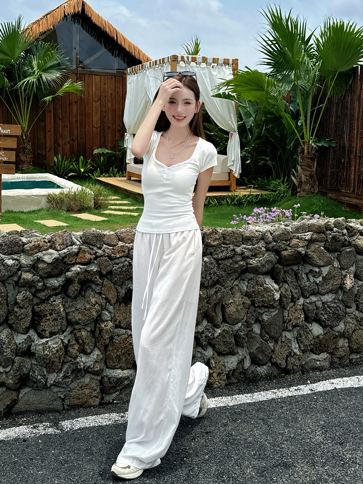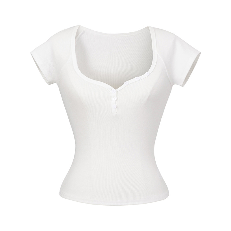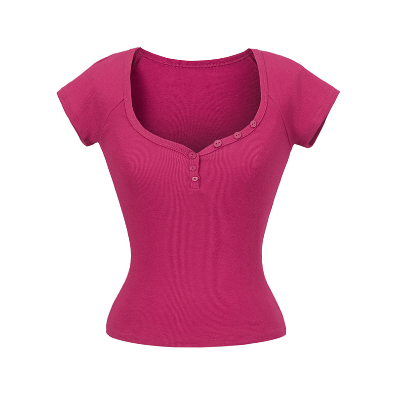Elevate your summer wardrobe with our Minimalist Summer Slim-Fit Short Sleeve Henley T-Shirt for Women. Crafted from lightweight fabric, this flattering design offers a perfect blend of comfort and style, evoking a chic 90s-inspired vibe. Whether you’re dressing it up or down, this versatile tee is a must-have for effortless summer looks. Don’t miss out add it to your cart today!