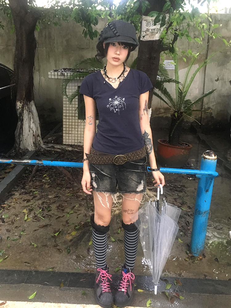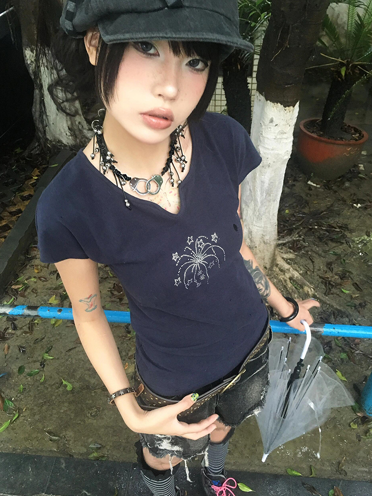 Elevate your summer wardrobe with our Navy Blue Short Sleeve V-Neck Rhinestone Spicy Girl Top, designed to make you stand out in style. This fitted top features stunning rhinestone accents and playful ruffled edges, offering a perfect blend of chic and comfort for any occasion. Whether you’re heading out for brunch or a night on the town, this versatile piece will enhance your silhouette and keep you feeling fabulous. Don’t miss out on this must-have addition add to your cart today!