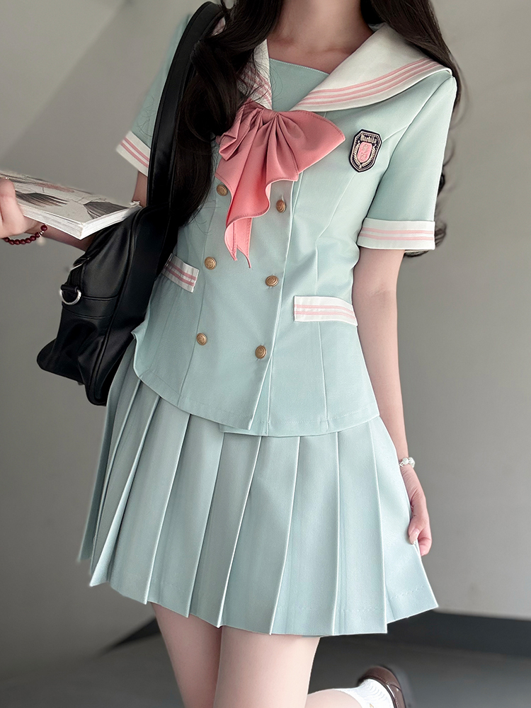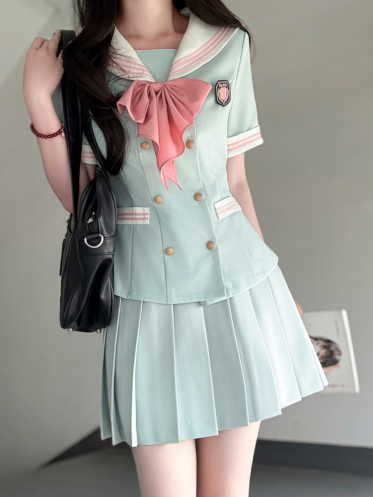 Navy Collar WaiDefined Short Sleeve Sailor Suit Set Sweet JK Top Summer High-quality product featuring vacation outfits, spring outfit, outfit ideas and more. Modern design that fits the latest trends. Premium materials ensure durability and comfort. Order now for special offers! Product designed with attention to every detail. Suitable for all occasions and personal styles.