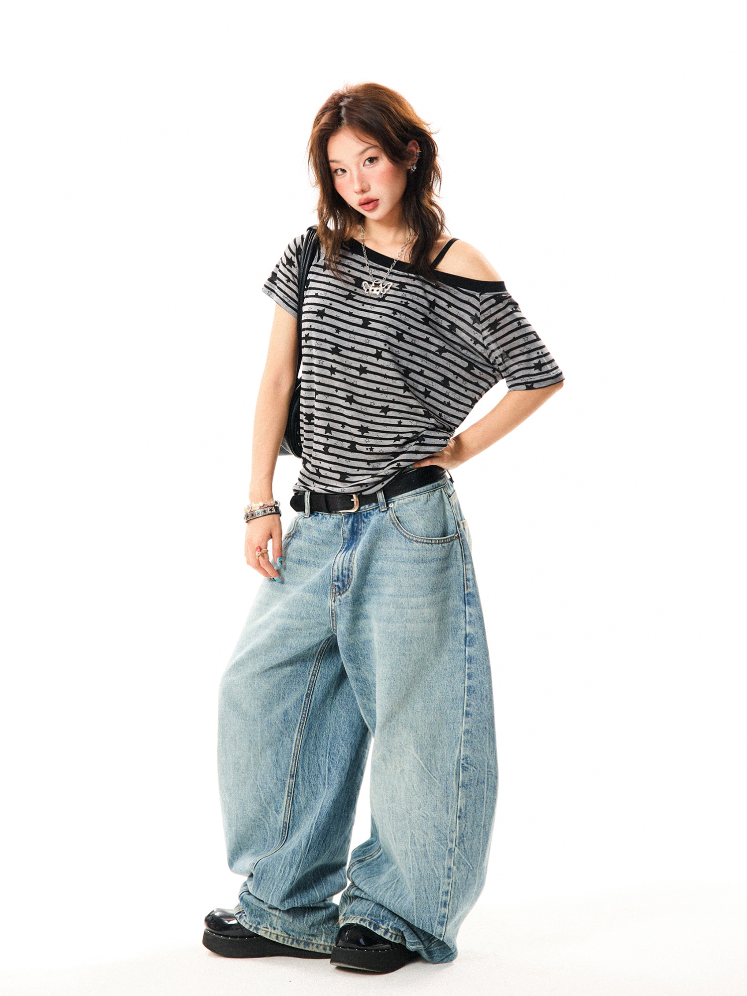 Elevate your summer wardrobe with our Off-Shoulder Color-Blocking Striped T-Shirt, designed for the modern, spicy girl. This versatile short sleeve top features a flattering off-shoulder fit that highlights your collarbones while offering a playful mix of vibrant stripes. Perfect for casual outings or relaxed weekends, its lightweight fabric ensures all-day comfort and breathability. Make a statement this season and embrace effortless style add this must-have piece to your cart today!