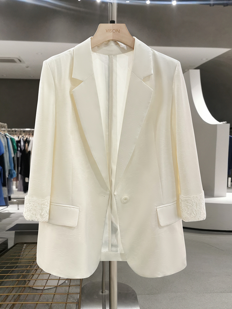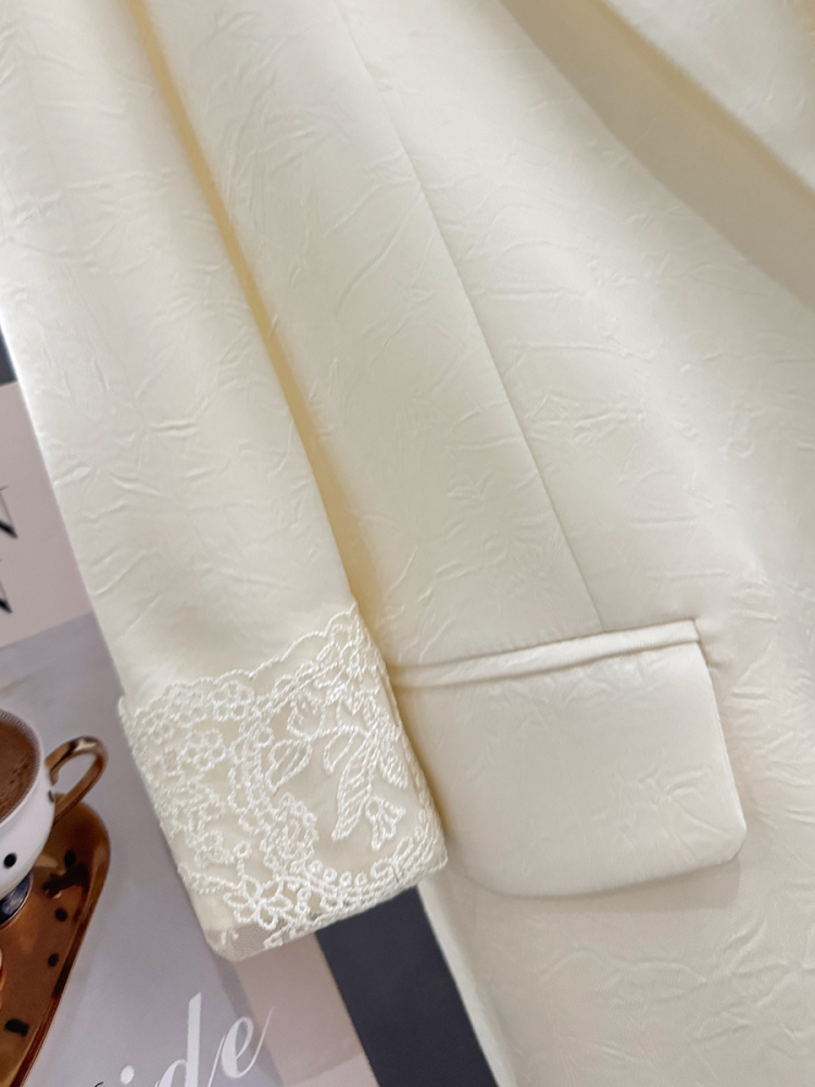 Off White Lace Cuff Blazer Women ummer, Acetate Textured Suit, Layering High-quality product featuring business casual outfits for women, outfit inspo, vampire costume aesthetic and more. Modern design that fits the latest trends. Premium materials ensure durability and comfort. Order now for special offers! Product designed with attention to every detail. Suitable for all occasions and personal styles.