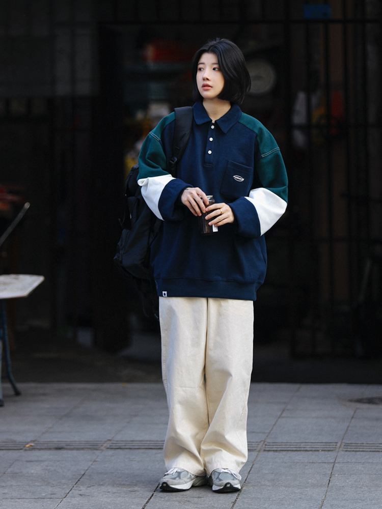 Oversized Men Patchwork Polo Shirt Casual Couples Outfit – Holiday Outfits