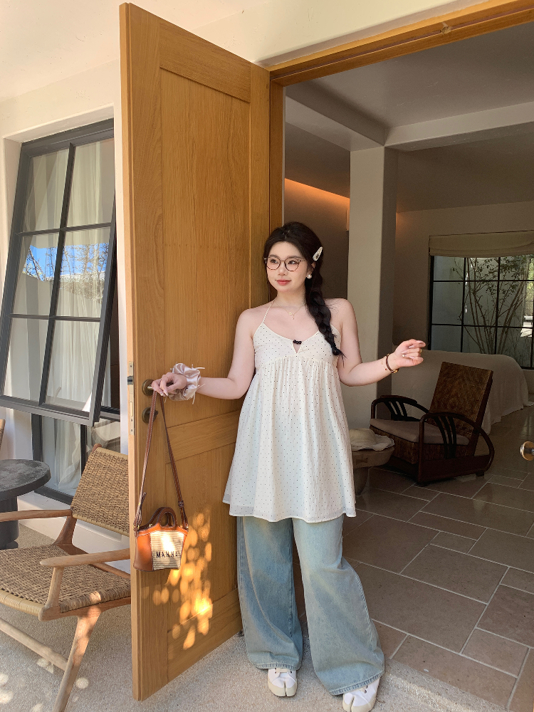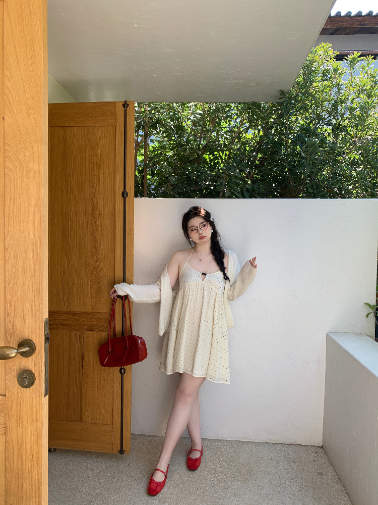 Peach Milk Polka Dot Halter Neck Camisole Dress Sheer Layered – Y2k Outfits