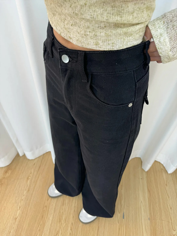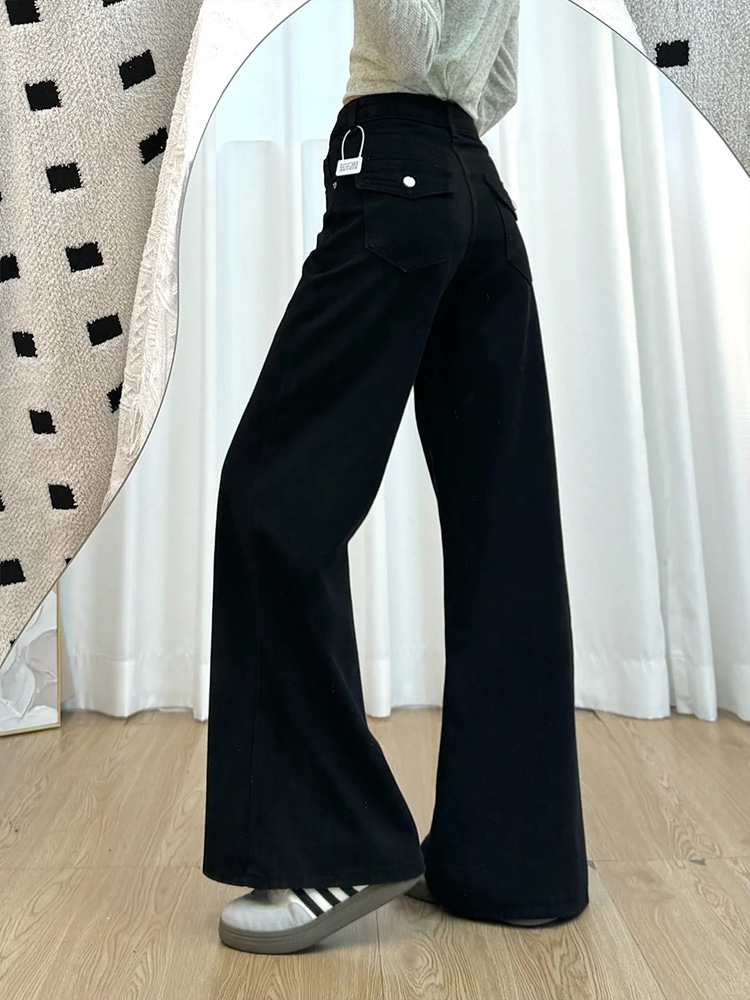 Surprisingly well-made for the price— the matte finish which hides fingerprints, Small touch, big difference. Glad I picked Petite Women Black Wide Leg Jeans, Loose Fit Flar – Black Jeans Outfit Fall up.