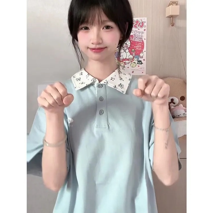 Exactly what I needed, especially— true-to-size fit that doesn’t shrink after washing, Small touch, big difference. Glad I picked Pink Floral Patchwork Polo Collar T-shirt: Perfect Summer Fits for Women up.