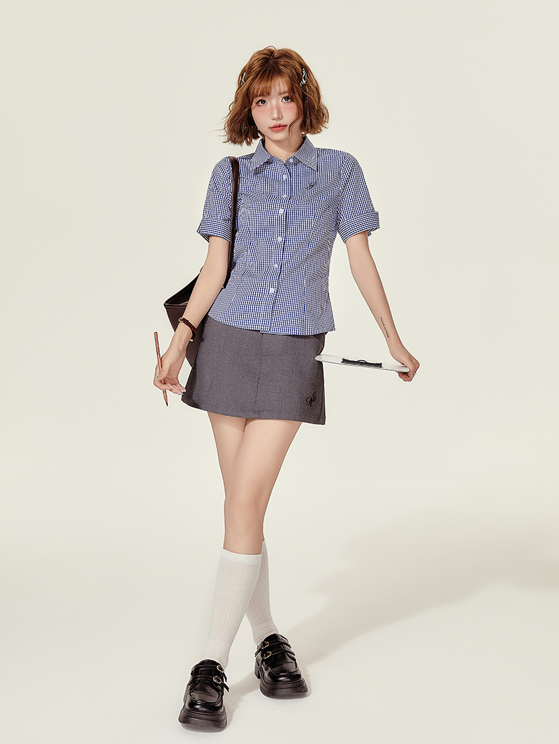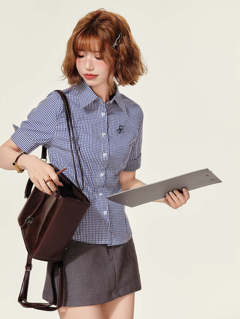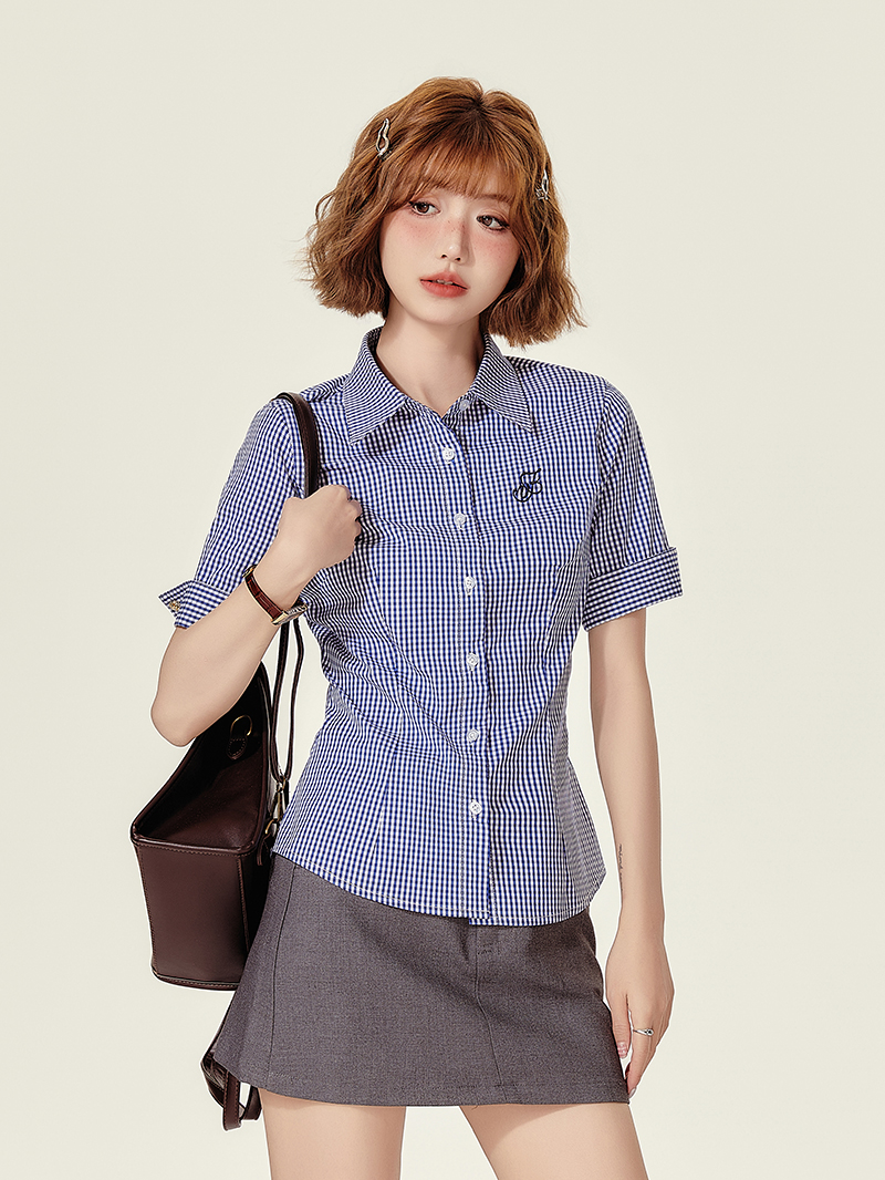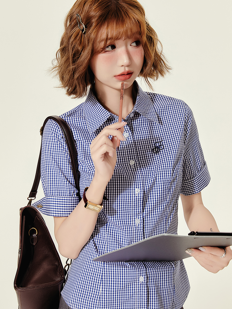 Plaid Embroidered Short Sleeve Shirt Women Slim Fit Summer Top High-quality product featuring fall fits, easy halloween costume, outfit inspo and more. Modern design that fits the latest trends. Premium materials ensure durability and comfort. Order now for special offers! Product designed with attention to every detail. Suitable for all occasions and personal styles.