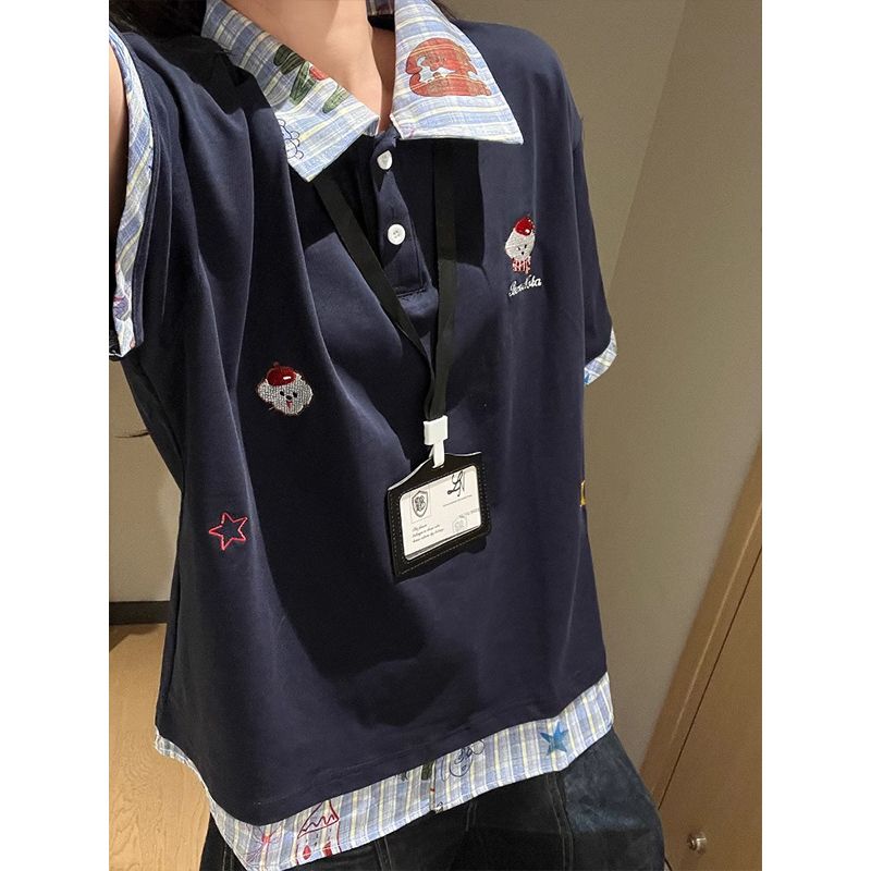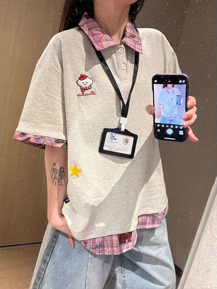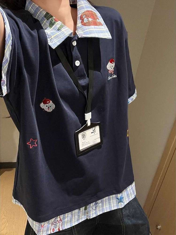 Stylish Plaid Embroidered Puppy Polo Shirt for Women: Perfect Summer Fits