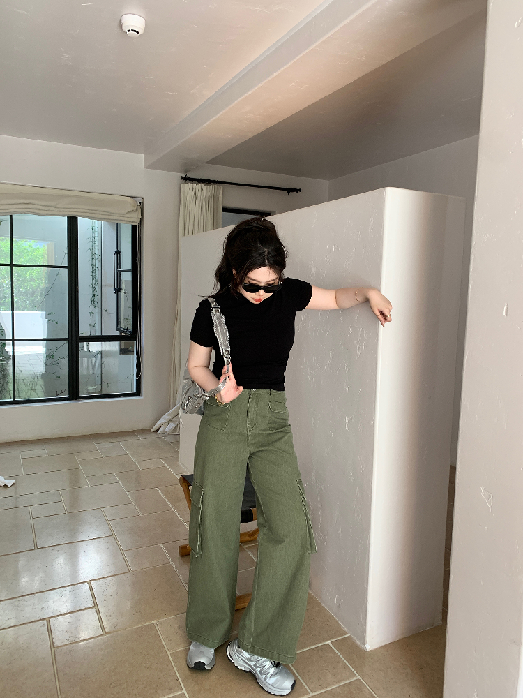 Plus Size Retro Straight Leg Multi Pocket Wide Leg Cas – Cargo Pants Outfit